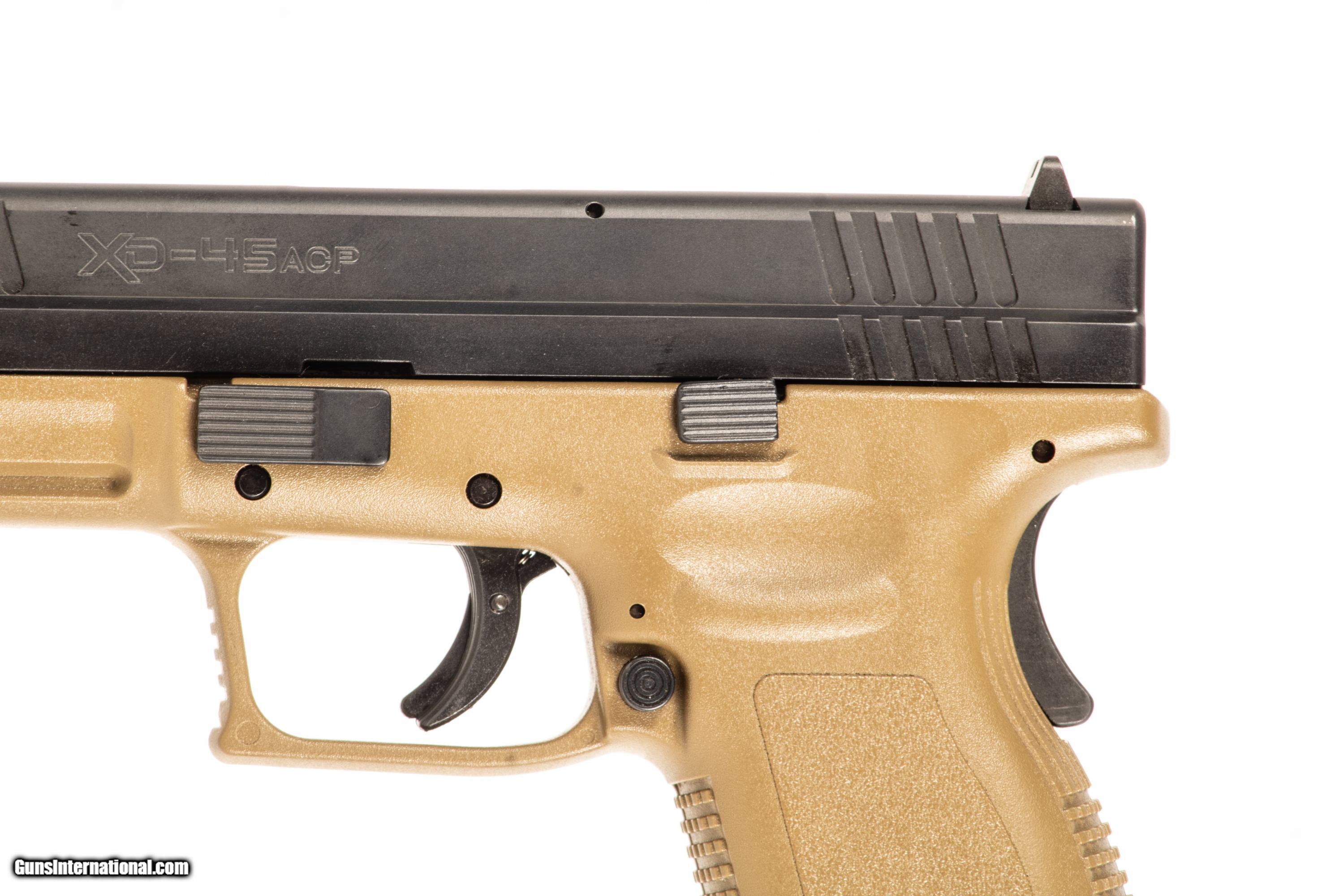 Springfield XD-45 FDE chambered in 45 ACP with a 4 inch barrel bright & shiny bore case 2 extra magazines and gear. This is a used firearm that is in excellent condition and is covered by Dury's Lifetime Warranty.