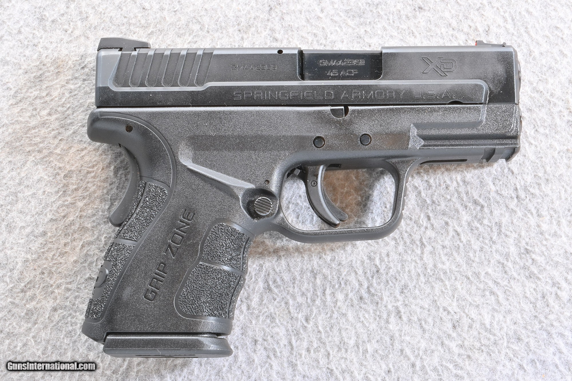 Description: A Springfield Armory XD-45 Mod 2 sub-compact in .45 ACP with a 3 1/4 inch barrel. .45 ACP SOLD Metal Condition: Excellent with wear Wood Condition: Excellent with wear Bore Condition: Bright and Shiny Barrels: 3 1/4 inches Triggers: Single action auto Weight: 1 lbs 8 oz Sights: "Fixed, fibre optic front Item Location: Gonzales, LA |