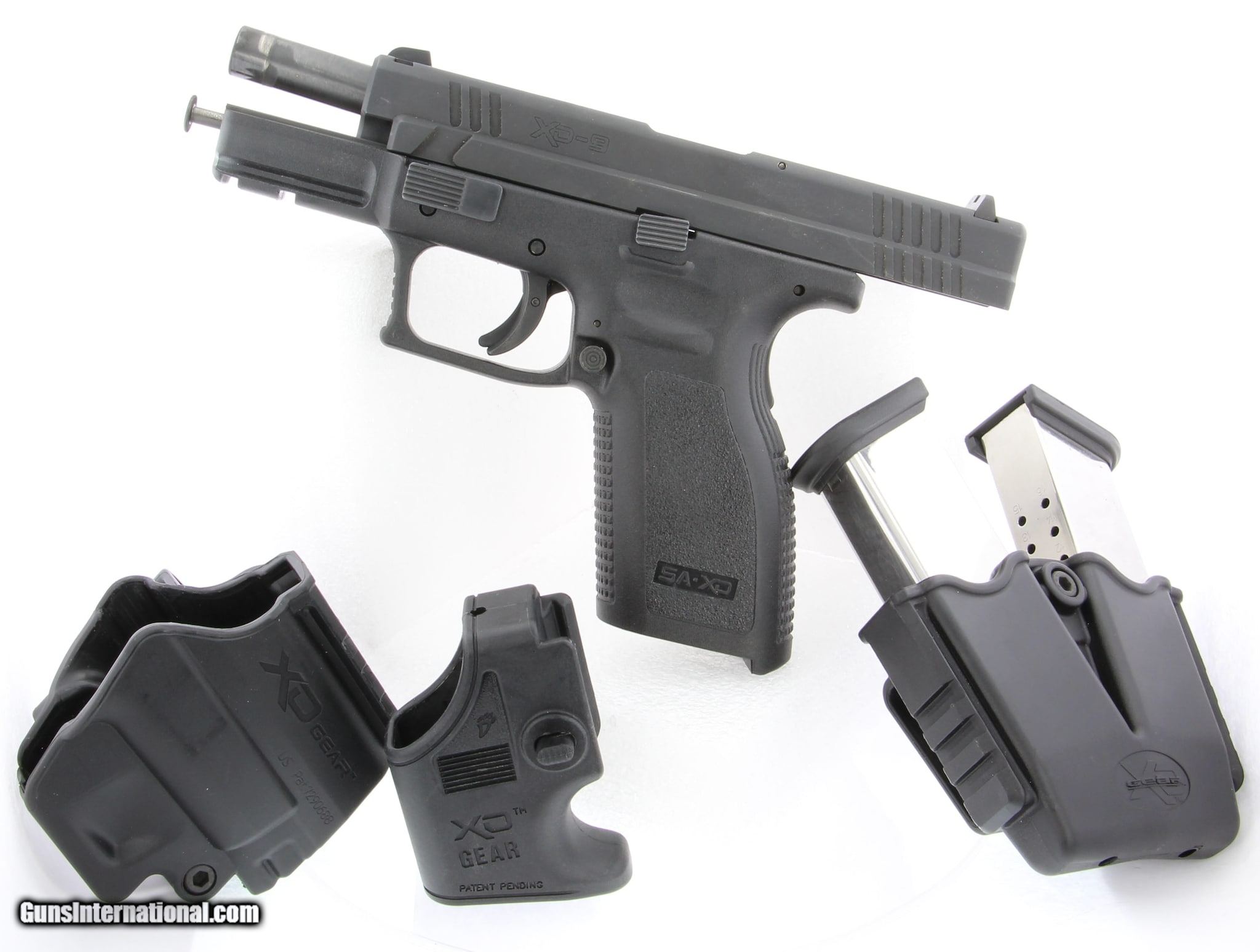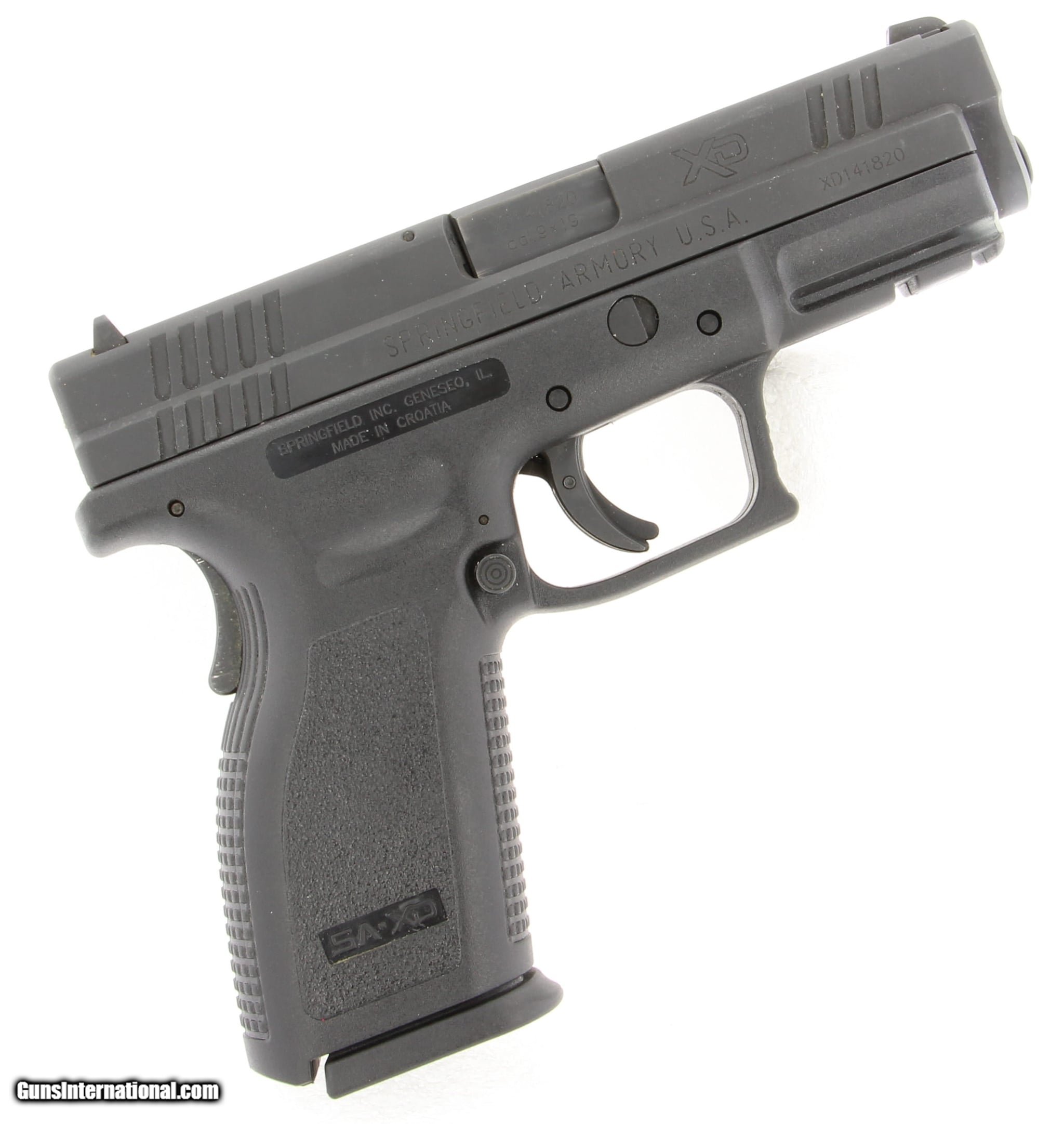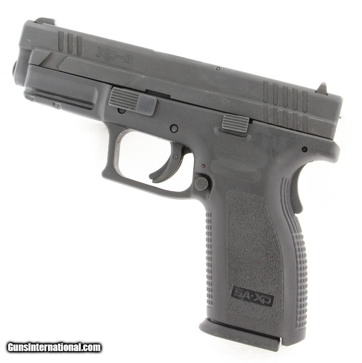 Description: Guns Listing ID: 668134 The 4 Inch XD combines safety with quality and ease of use. With the new Ultra Safety Assurance (U.S.A.) action trigger system, this polymer framed pistol is as comfortable as it is safe. The XD‚‚s frame is made from a proprietary polymer material that has produced a pistol that is extremely durable, reliable and lighter than popular competitive models. The frame is checkered in front and rear for a more positive grip, even with wet or sweaty hands. The XD‚‚s also have a slide release, ambidextrous magazine release button, and a quick turn disassembly lever, allowing for amazingly fast and simple field-stripping.Specifications and Features: .9mm Luger Striker fired semi automatic 4\" stainless steel barrel 16 rounds capacity Polymer frame Fixed dovetail front and rear 3 dot sights Forged steel slide Grip and trigger safeties Striker status indicator Loaded chamber indicator Accessory rail Dual spring recoil system Full length guide rod 7.3\" overall length 6.87\" sight radius 28 oz Black Melonite finish SKU: 221100 SOLD Manufacturer: SPRINGFIELD ARMORY Model: XD-9 Caliber Info: 9MM LUGER (9X19 PARA) Condition: Used - Non-Certified Barrels: 4 BARREL |