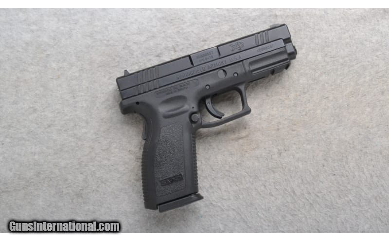 Description: This Springfield Armory Model XD-9 is a right hand semi-auto pistol in 9mm Cal. It has a 4 inch barrel with a front and rear serrated slide. A blade front sight and notch rear sight with 3 white sight dots. The grip is a textured black polymer. It has a lower accessory rail and loaded chamber indicator. 9mm Parabellum SOLD Chambers: 10 shot magazine. Metal Condition: Excellent. Bore Condition: Excellent. Barrels: 4 inch barrel with a front and rear serrated slide. Weight: 28 oz. Sights: Blade front. Notch rear. 3 white sight dots. Item Location: Richfield, WI |