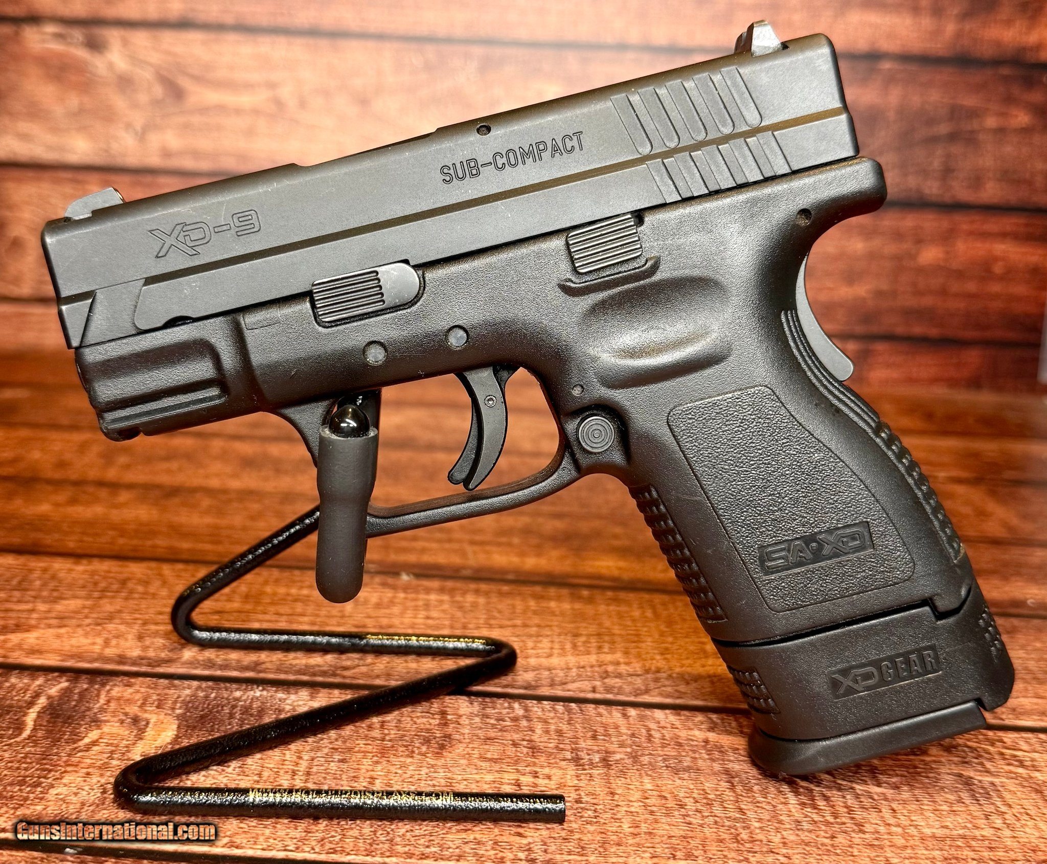 Description: Guns Listing ID: 548273 The Springfield Armory XD-9 Sub-Compact is a remarkable semi-automatic pistol designed for those who demand reliability and efficiency in a compact form. This firearm is highly sought after by collectors and enthusiasts alike, featuring a caliber of 9mm Luger and showcasing excellent overall condition with only minor signs of previous handling. With its clean bore and sharp rifling, this pistol is not only a functional tool but also a well-maintained piece of craftsmanship. Included in the sale are one (1) 10-round magazine and a soft pistol case, ensuring you have everything needed for both usage and storage. Originating from the renowned XD (eXtreme Duty) series, the XD-9 Sub-Compact was initially developed by HS Product and later imported by Springfield Armory into the United States. Designed with concealed carry and self-defense in mind, this model offers a perfect balance between size and capacity. Its double-stack magazine allows for 10+1 rounds, providing ample firepower within a compact design. The XD series is noted for its robust construction, featuring a striker-fired action and multiple safety features, including a grip safety, making it a trusted choice for both civilians and law enforcement. The XD-9 Sub-Compact‚s black finish and durable polymer frame ensure resilience in various conditions, while its lightweight and small size facilitate easy, discreet carrying. The consistent and crisp trigger pull of the striker-fired action enhances accuracy, making this pistol user-friendly for shooters of all levels. Whether for personal defense or as a valuable addition to a collection, the XD-9 Sub-Compact delivers on all fronts with its practical features and superior craftsmanship. Specifications Manufacturer Springfield Armory Model XD-9 Submodel Sub-Compact Caliber 9mm Luger Overall Condition Excellent Bore Condition Excellent Action Striker Capacity 10 + 1 Barrel Length 3\" SOLD Manufacturer: SPRINGFIELD ARMORY Model: XD-9 Sub Compact Caliber Info: 9MM LUGER (9x19 PARA) Condition: Used - Non-Certified Barrels: 3 BARREL Action: SEMI AUTOMATIC Finish: black |