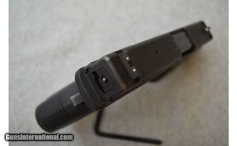 Description: Good shape overall with strong evidence of being a carry gun. The metal finish is worn thin in some areas such as around the rear top edges of the slide. There are also some places on the slide that look like holster wear. The worst damage are the spots of surface corrosion on the rear right of the slide. The frame is in good shape but on the right side where the trigger fingers rests has begun to smooth out. Comes with the pictured "duty kit", factory case, and a total of two magazines. 9mm Luger SOLD Chambers: Semiautomatic fed from detachable magazines. Metal Condition: Fair to good. Wood Condition: Frame is in good condition. Bore Condition: Excellent with bright shine and strong rifling. Barrels: 3" Blued. Triggers: Matte blued metal with integrated safety. Stock Dimensions: N/A Fore End: Single slot accessory rail. Butt Pad: Matte black polymer frame. Weight: 1lb 8oz Sights: Fixed front and rear 3-dot sights. Chokes: N/A Item Location: Green Bay |