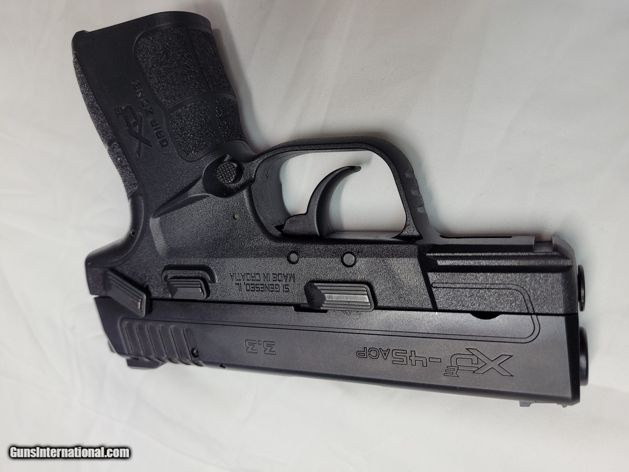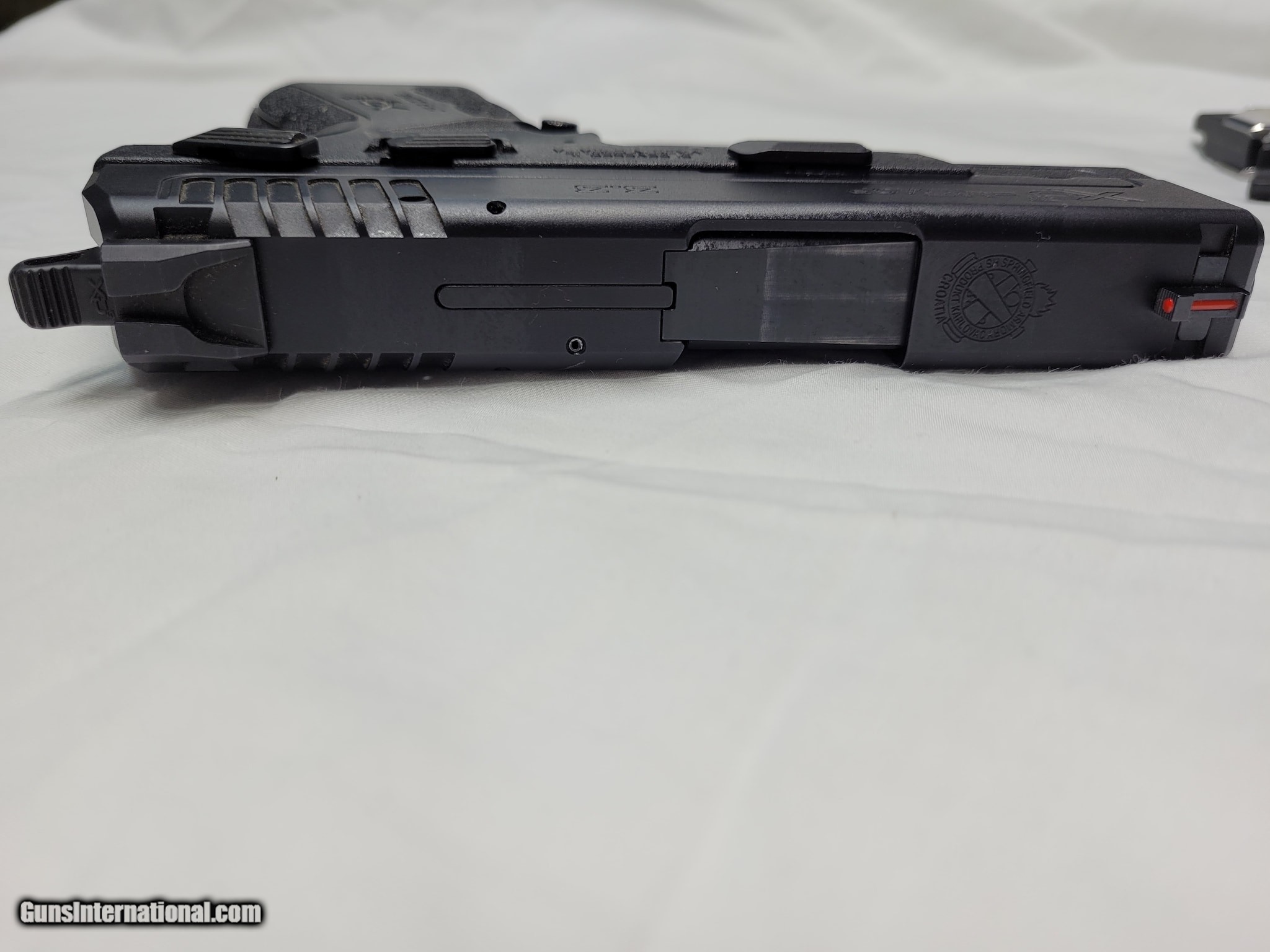 Description: Guns Listing ID: 309568 The XD-E features a sleek black polymer frame with a 1” grip width. Its features include its Low Effort Slide which requires 27% less effort to operate compared to other striker-fired handguns in its class, exposed hammer along with host of other safety mechanisms, single or double action trigger, and multi-textured GripZone. Like other XD models the semi-automatic XD-E has a forged steel Melonite coated barrel and slide, as well as a fiber optic front sight. The 45 ACP has a 6+1 capacity and weighs 23 ozs; the 9mm has an 8+1 capacity and weighs 25 ozs. Both may be fitted with an optional X-Tension magazine for increased capacity. • Safety/decocker • 3.3” forged steel barrel • Low Effort Slide • Exposed hammer • 9mm or 45 ACP SOLD Manufacturer: SPRINGFIELD ARMORY Model: XD-E 45 Caliber Info: .45 ACP Condition: new Barrels: 3.3" barrel Finish: BLACK |