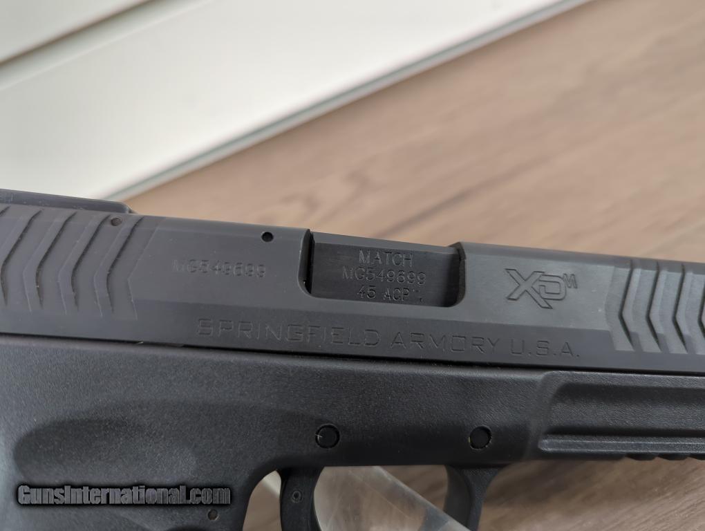 Description: Guns Listing ID: 1306097 SPRINGFIELD ARMORY MODEL XDM952545BHC, SERIAL NUMBER MG549699, SEMI - AUTOMATIC, 45 ACP (45 AUTO), BLACK (MATTE), YES - INCLUDES ORIGINAL BOX AND PAPERS, 5\" BARREL, COMPETITION CUTOUT SLIDE, INCLUDES COMP SET: THREE 13 ROUND MAGAZINES, HOLSTER, MAG HOLSTER SOLD Manufacturer: SPRINGFIELD ARMORY Model: XD(M) Competition Caliber Info: .45 ACP Condition: Used - Non-Certified Barrels: 5.3 BARREL |