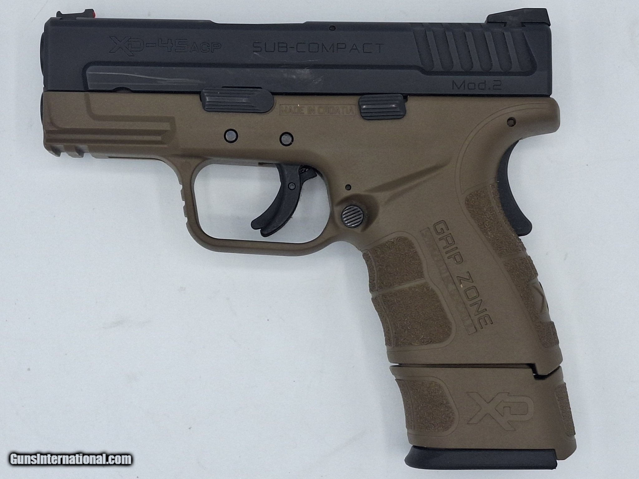 Description: Guns Listing ID: 477056 Springfield Armory XD Mod.2 Sub-Compact, .45 ACP, 13+1 Rounds, 3.3\" Barrel, Flat Dark Earth (FDE) with Grip Zone, 3-Dot Sights, One Magazine, Hard Case. INV#0527839/UUE/DO SOLD Manufacturer: SPRINGFIELD ARMORY Model: XD MOD.2 Caliber Info: .45 ACP Condition: Used - Non-Certified Barrels: 3.3 BARREL Action: DOUBLE ACTION |