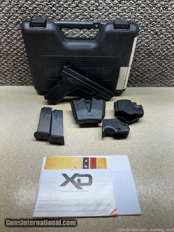 Description: Guns Listing ID: 463253 This listing is for a USED Springfield XD Tactical 45 ACP Black Finish Manual Safety 5\" BBL 13+1. This is a used gun, it has been fired and will have residue present. This Springfield XD Tactical is chambered in 45 ACP, and it will hold 13 rounds in the magazine. This pistol comes with a 5 inch barrel. It comes equipped with a fixed front sight, and a fixed rear sight. There are a few light scratches present on the slide. The action appears to be in good condition, the finish appears to be in overall good condition, and the bore appears to be in good condition. This pistol comes with a dual magazine holster, an OWB holster, a speed loader, two 13 round magazines, an owner’s manual, and the hard case. This would be a great duty or plinking pistol. ** DISCLAIMER** THIS FIREARM HAS NOT BEEN TEST FIRED*** SOLD Manufacturer: SPRINGFIELD ARMORY Model: XD TACTICAL Condition: Used - Non-Certified Barrels: 5 Gauge Info: .45 ACP Finish: black |