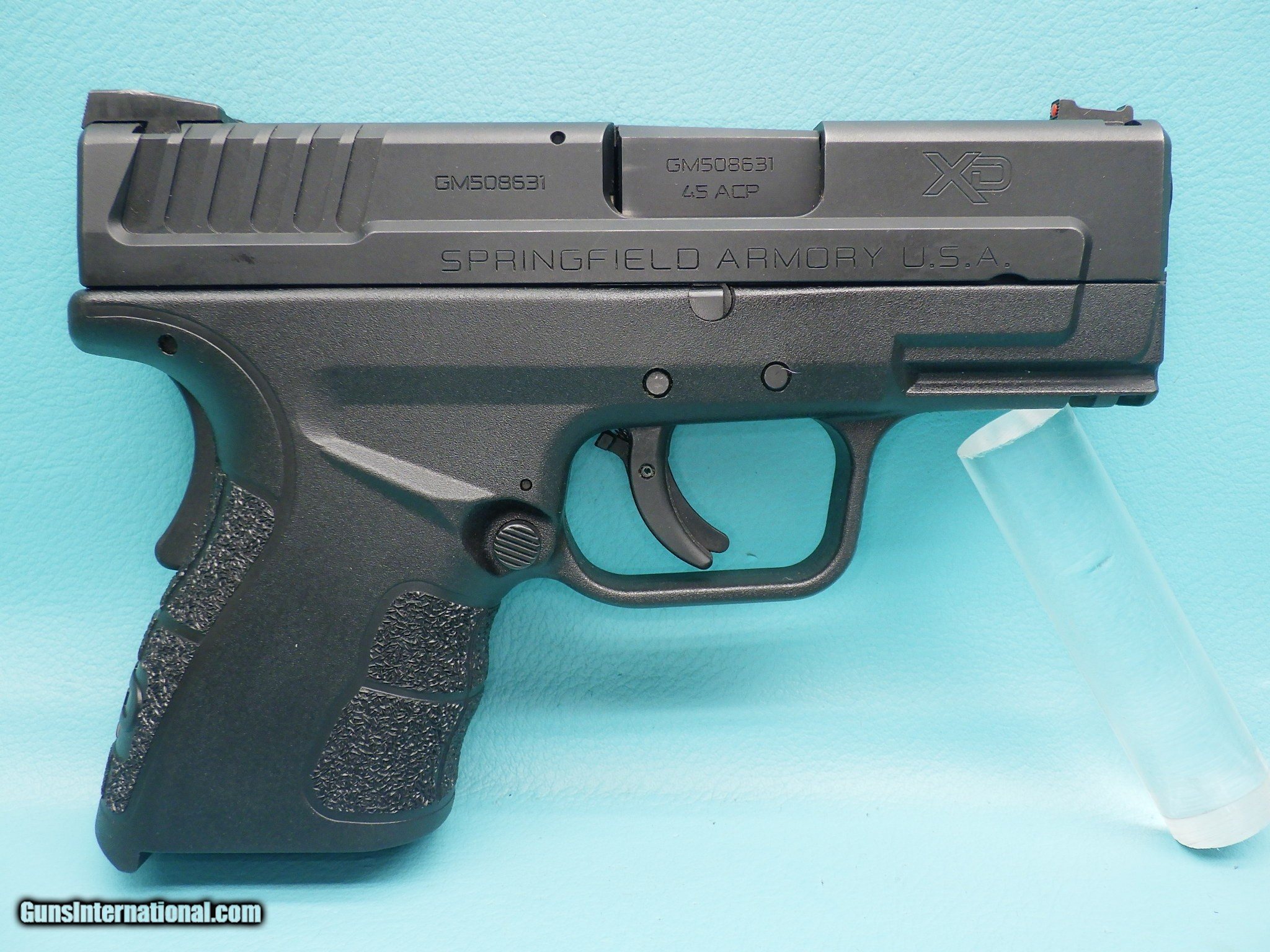 Description: Make: Springfield Armory Model: XD45 MOD Compact Finish: Black Melonite Caliber: .45 acp Action: Semi-auto Barrel length: 3.3 inches Bore: Shiny with sharp rifling Grips: Polymer Sights: Low profile rear combat, front fiber optic MFG Date: 2015 - 2020 Features: Ultra slim contoured polymer frame, hammer forged barrel, USA trigger system, Gripzone grips with 3 zones of different textures, grip safety, loaded chamber indicator, striker status indicator, posi-wedge slide serrations, lower accessory rail and high hand beavertail. Extras: Factory box w/owners manual, extra fiber optic sites, extra mag. floor plate, cable lock, bore brush, pack of gun oil and two magazines (one 10 round, one 9 round, both with grip extenders). Condition: Very good with very light wear Shipping Cost: $25.00 Pistol functions as it should with smooth feed and slide operation. Please refer to the photos for the overall condition. FFL is required. No handgun sales in MA. SOLD Handgun Caliber: .45 ACP (.45 Auto) Manufacturer: Springfield Armory Model: XD-45 MOD2 Serial Number: GM508631 Barrel Length: 3.3 |