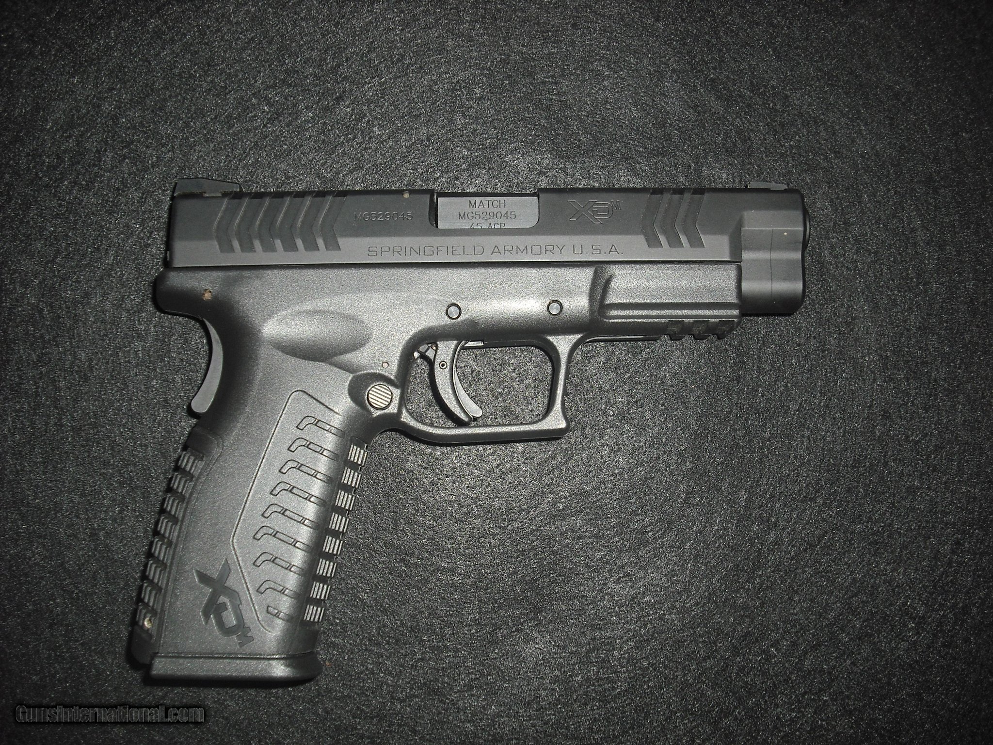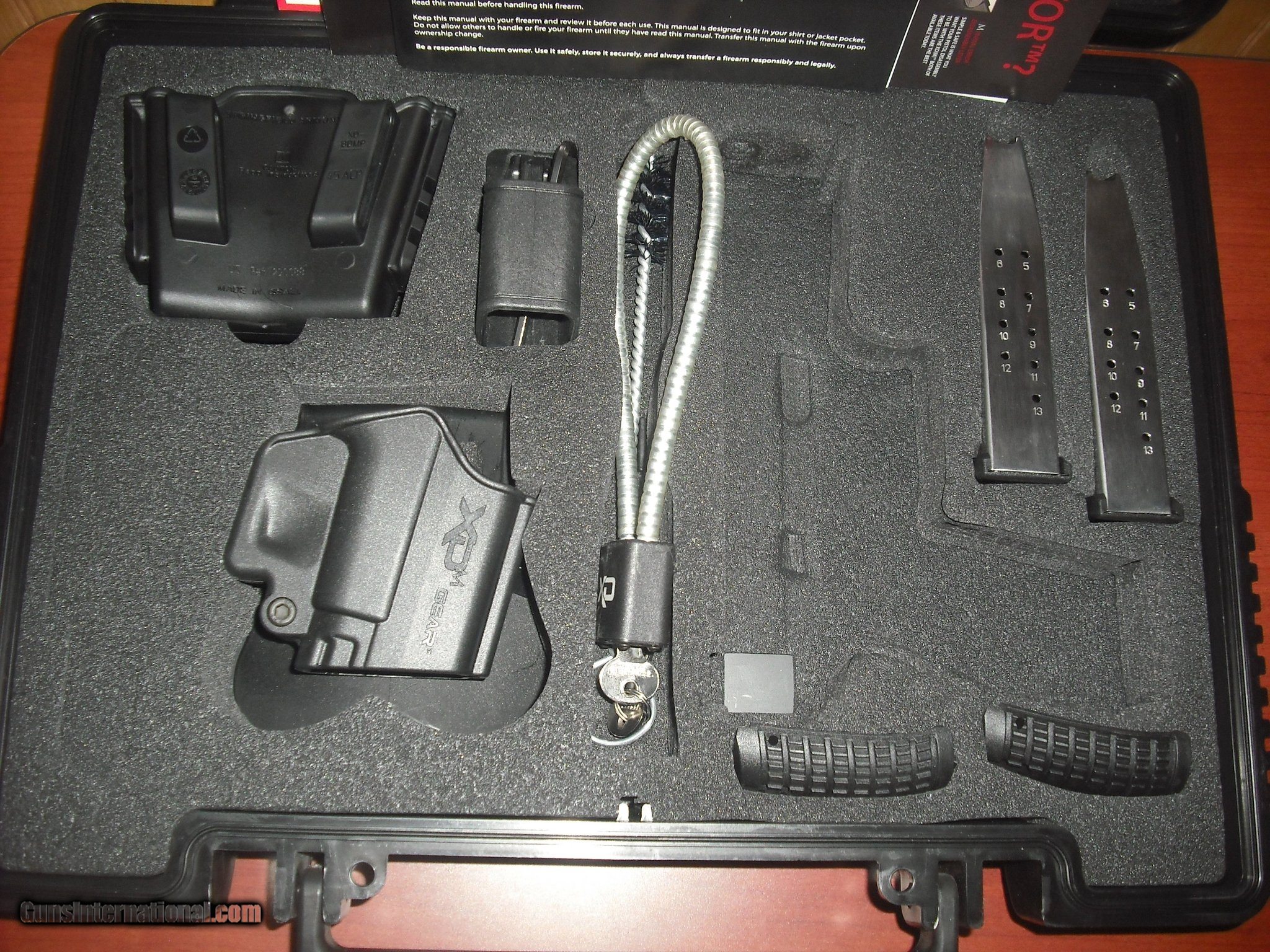 Description: Guns Listing ID: 545979 This Springfield Armory model XDM 45 semi-automatic pistol is in Excellent Condition and includes the cold carrying case with 2 extra magazines, 2 extra grips, 1 extra hoster, 1 tac pack, 1 speedloader, and a lock & key, as well as the \"Operation and Safety Manual\" and other paperwork. SOLD Manufacturer: SPRINGFIELD ARMORY Model: XDM 45 Caliber Info: .45 ACP Condition: Used - Non-Certified Barrels: 3 BARREL Action: SEMI AUTOMATIC Finish: black |