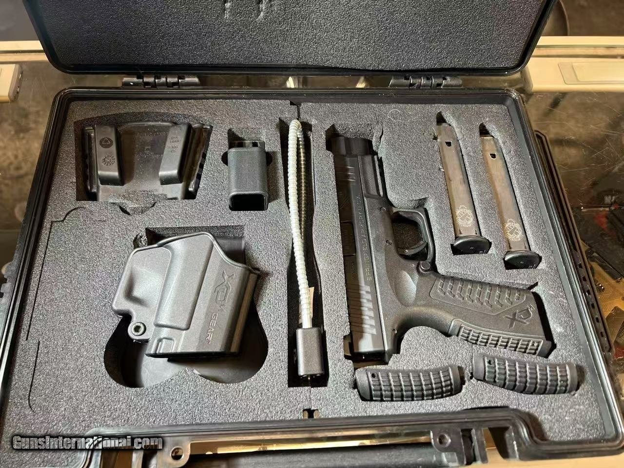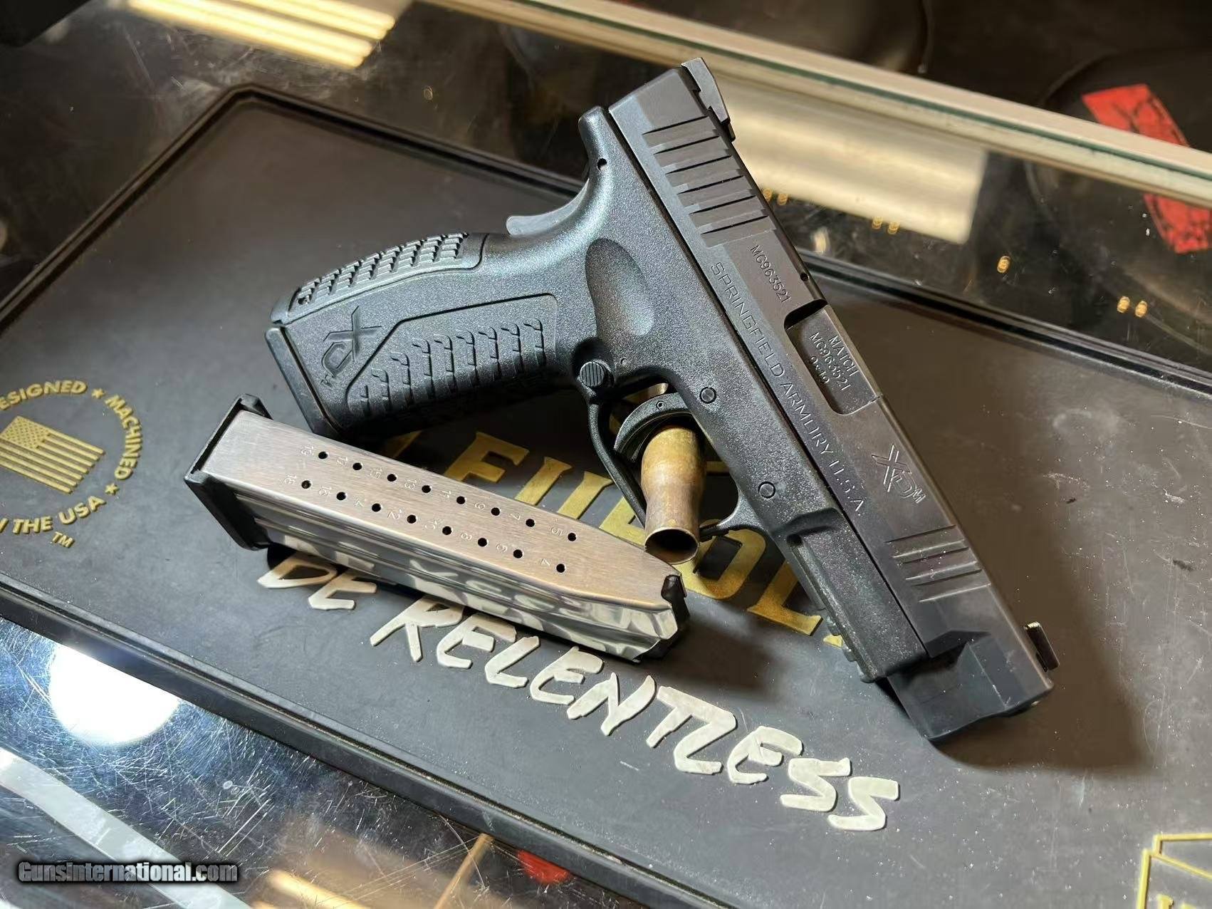 Description: Guns Listing ID: 522294 The Springfield Armory XDM-9 is a double-action semi-automatic pistol chambered in 9mm with a 19-plus-1 round capacity. A 4.5-inch barrel is adorned with Trijicon night sights while users can attach their choice of accessories to an integral picatinny rail. Interchangeable backstraps allow shooters to fit this gun to their own hands. This package comes with two 19-round magazines. Seller Description: Manufacturer: Springfield Armory Model: XDM 9mm 4.5 Black Caliber: 9mm Luger Recoil System: One Piece Full Length Guide Rod Sights: Low Profile Combat Rear Weight (with empty magazine): 29 oz. Height: 5.75\" Slide: Forged Steel Melonite Finish Barrel: 4.5\" Hammer Forged Steel Melonite / 1:10 Twist Length: 7.6\" Grip Width: 1.18\" Frame: Black Polymer Magazines: 2 - 19 Round Stainless Steel OEM BOX, Mag Pouch, Holster, Speed loader SOLD Manufacturer: SPRINGFIELD ARMORY Model: XDM-9 4.5 Caliber Info: 9MM LUGER (9X19 PARA) Condition: Used - Non-Certified Barrels: 4.5 BARREL Action: STRIKER FIRED |