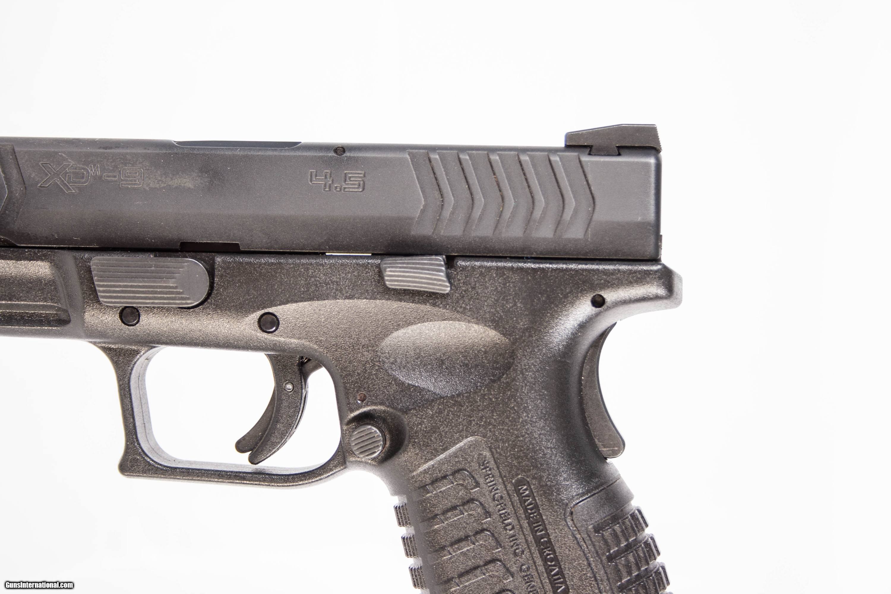 SPRINGFIELD ARMORY XDM-9 CHAMBERED IN 9 MM WITH A 4.5 INCH BARREL CASE AND 1 EXTRA MAGAZINE. THIS GUN IS IN EXCELLENT CONDITION AND IS COVERED BY DURY'S LIFETIME WARRANTY.