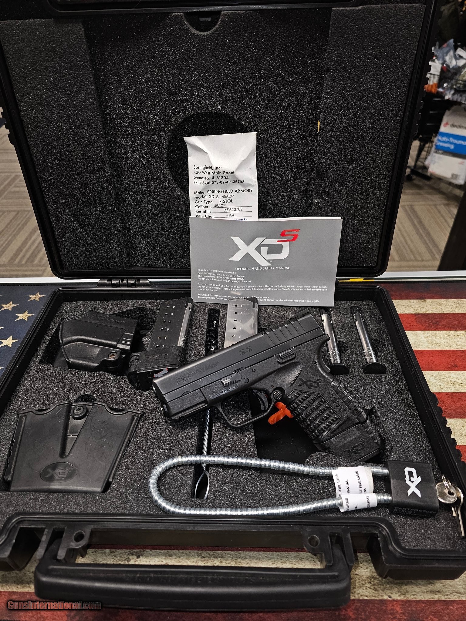 Description: Guns Listing ID: 607266 Comes with Case, 5 total mags (2-5 Round, 3-7 Round), (2) Holsters and one Mag holster. The Springfield Armory XDS 3.3\" in .45 ACP is a compact, single-stack semi-automatic pistol designed for concealability and reliability. Built on a slim polymer frame with a striker-fired action, the XDS series is known for its ergonomic grip, consistent trigger pull, and solid construction. Caliber .45 ACP Action Striker-fired, semi-automatic Barrel Length 3.3 inches Frame & Finish Polymer frame Grip Textured grip surface for control Hard case Owner’s manual Cable lock Manufacturer: SPRINGFIELD ARMORY Model: XDS 3.3 Caliber Info: .45 ACP Condition: Used - Non-Certified Barrels: 3.3" BARREL Action: STRIKER FIRED Price: $499.99 Contact Seller |