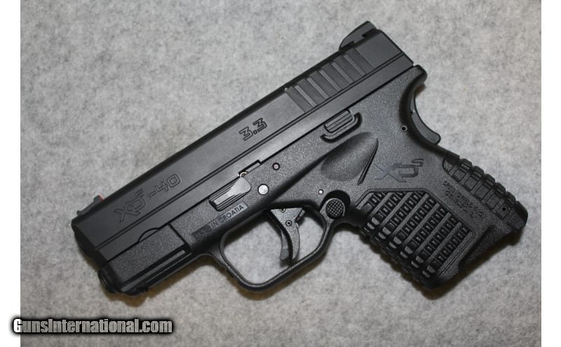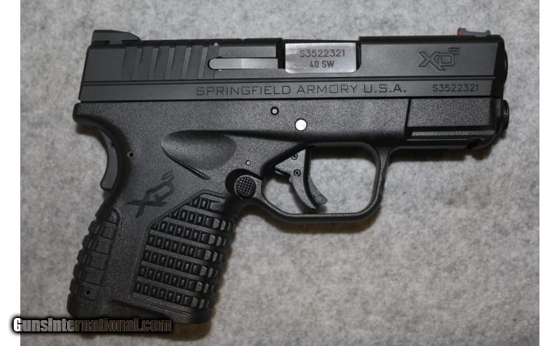 Description: Springfield combines excellent ergonomics, enhanced safety features and utterly reliable functionality. It features a single stacked magazine capacity and a slim unobtrusive profile for easy concealment and comfort. Sporting the ergonomic feel that has made the entire Springfield XD line famous, it points naturally as it is raised on target so where you point is where you shoot. This polymer framed striker fired handgun is equipped with a grip safety and Springfield's Ultra Safety Assurance (U.S.A.) action trigger system. The Springfield XDs is a great choice for a concealed carry weapon or plainclothes professional duty. .40 S&W SOLD Barrels: 3.2 in Weight: 1.6 lbs Sights: Red Fiber Optic Front/Serrated Blacked Out Rear Item Location: Farmington, UT |