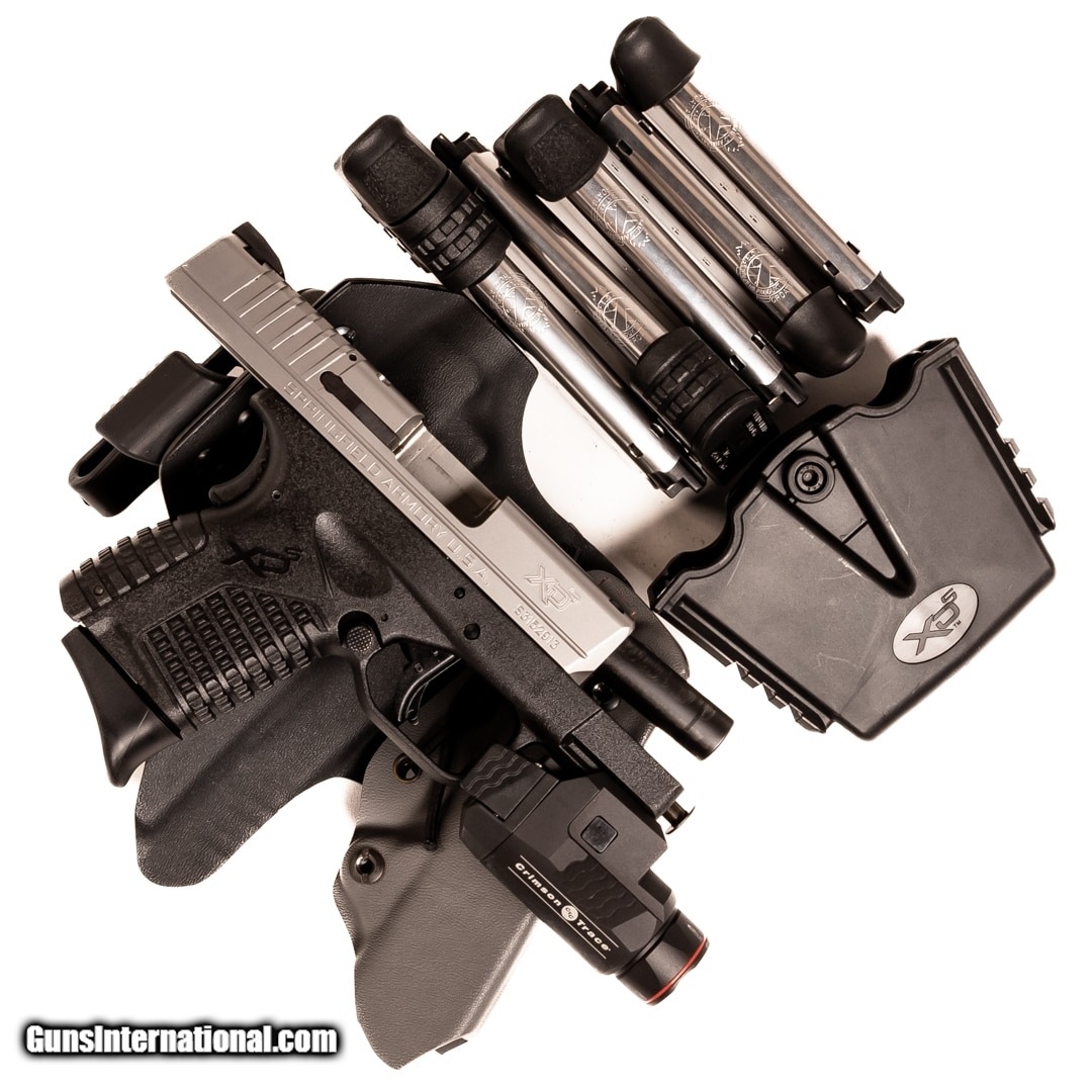 Description: Guns Listing ID: 683186 The Springfield Armory XDS-45ACP 3.3” was designed to be the new standard for a daily carry gun, and it doesn’t disappoint. It boasts impressive ergonomics, reliability, and power. Overall, this is an affordable compact handgun that will perform well for personal protection. This handgun features two 7-round magazine, one 6-round magazine, three 5-round magazines, a dual magazine holster, a Crimson TL-1 light, a light bearing right-handed IWB holster, and backstraps. Get the best bang for your buck when you get a Certified Used Firearm . When you see the Certified Used stamp on any of our firearms, you can be confident that you’re getting exactly what you want – a gun only in very good to excellent condition and held to the highest quality standard. All Certified Used Guns come with a ‘no questions asked’ return policy . PLUS, ALL CERTIFIED USED GUNS SHIP FREE! SOLD Manufacturer: SPRINGFIELD ARMORY Model: XDS-45 3.3 Caliber Info: .45 ACP Condition: Used - Certified Barrels: 3.3 barrel Finish: TWO-TONE |