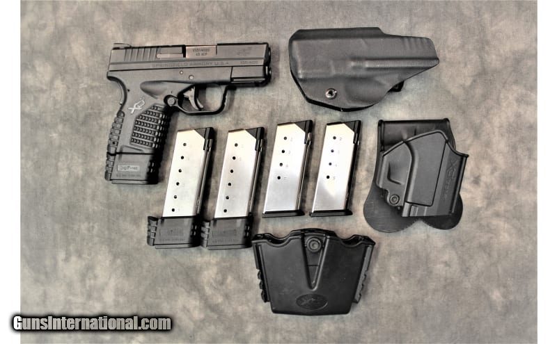 Description: The XDs is the first single-stack polymer framed pistol from Springfield Armory. In addition to the inherently slim nature of the design, the frame is a short sub-compact style, and the barrel is just 3.3 inches. The XDs single stack seems to disappear when you carry it.The strengths of the XDs 3.3" barrel don't stop there. Try it with the X-Tension 7 round .45 ACP magazine, and you'll find that your carry pistol has grown into something that will astonish and delight you on the range. Its comfortable ergonomics, complete with two interchangeable backstraps allow it to work without punishing your hands. The fiber optic front sight and white-dot rear sight align quickly and provide a clear sight picture for accurate shooting. The XDs also includes the Ultra Safety Assurance (USA) Action Trigger System, grip safety, loaded chamber indicator, firing pin block, and grip safety that make the entire family of XD pistols safe and easy to use. .45 ACP SOLD Metal Condition: Great with some signs of wear Bore Condition: Great Barrels: 3.3 Weight: 2 lbs Sights: "Fiber optic Front, target rear Item Location: Las Vegas, NV |