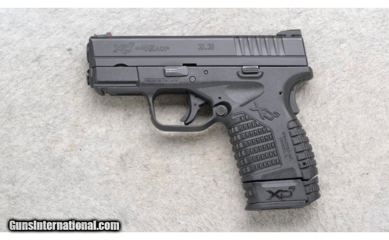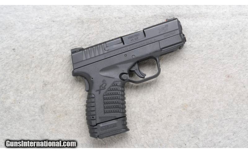 Description: This Springfield Armory Model XDS is a right hand semi-auto pistol in .45 ACP Cal. It has a 3.25 inch barrel with a rear serrated slide. A red high visibility front sight and a notch rear sight with sight dots. The grip is a textured black polymer. It has a lower accessory rail. .45 ACP SOLD Chambers: 6 round magazine. Metal Condition: Very Good. Bore Condition: Excellent. Barrels: 3.3 inch barrel. Weight: 22 oz. Sights: Red high visibility front. Notch rear with sight dots. Item Location: Richfield, WI |