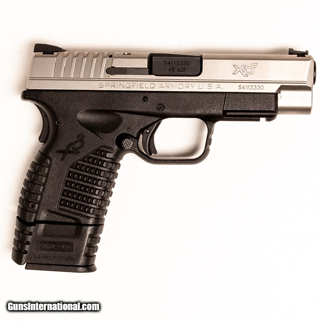 Description: Guns Listing ID: 571920 The Springfield Armory XDS-45 ACP was designed to be the new standard for a daily carry gun, and it doesn‚‚t disappoint. It boasts impressive ergonomics, reliability, and power. Overall, this is an affordable compact handgun that will perform well for personal protection. This XDS-45 includes the original case, owner‚‚s manual, and one 7-round magazine. SOLD Manufacturer: SPRINGFIELD ARMORY Model: XDS-45 Caliber Info: .45 ACP Condition: Used - Certified Barrels: 3.8 BARREL Finish: TWO-TONE STAINLESS |