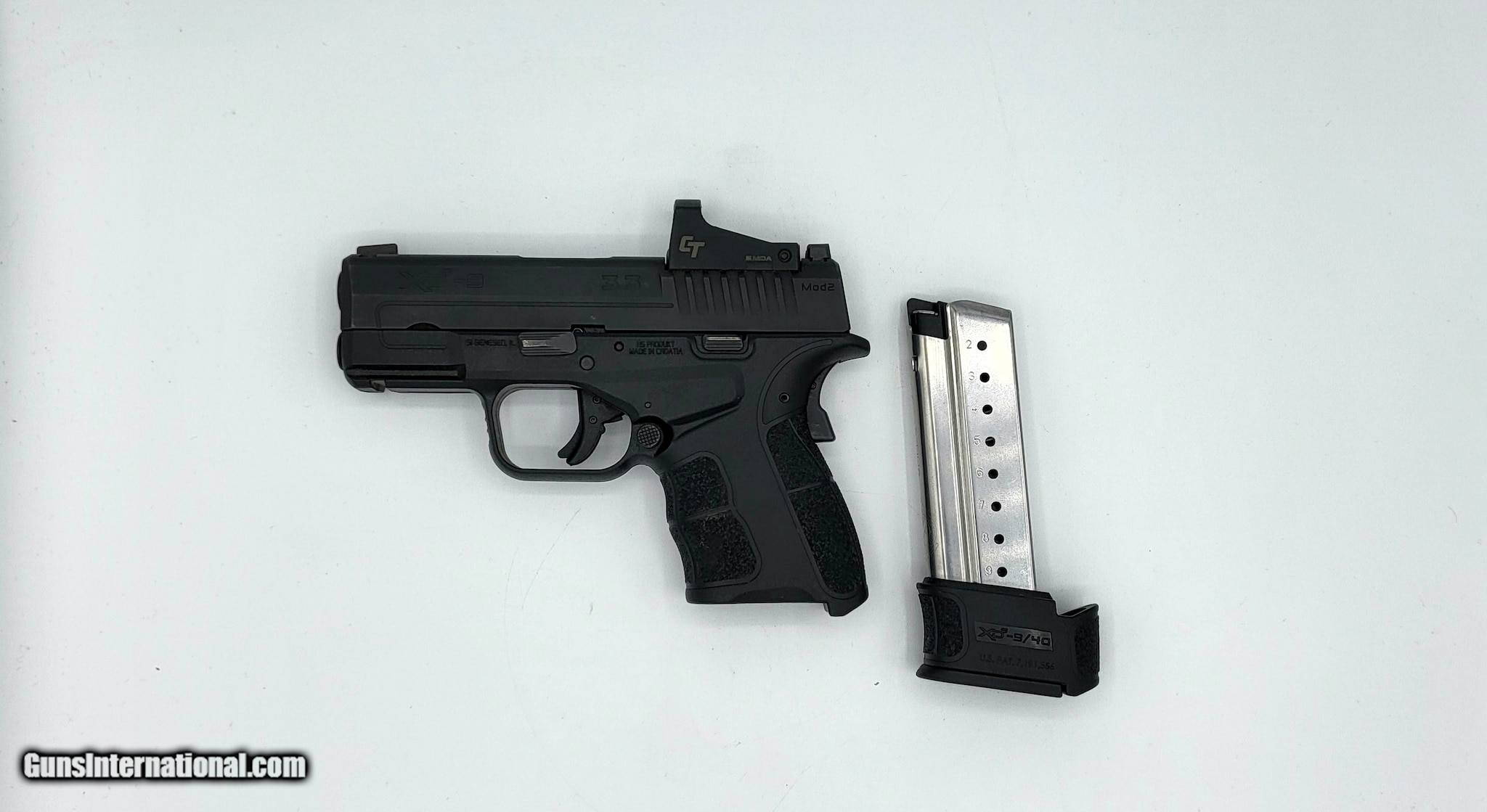 Description: Guns Listing ID: 698343 This is a pre-owned Springfield Armory XDS-9 3.3 Mod.2 in good condition. Comes with 1-9+1 round magazine. The XD-S Mod.2® OSP™ 3.3\" Single Stack 9mm pistol is the optics-ready, deep-cover defensive pistol that goes anywhere. With an overall width of less than 1\", three separate safety systems and the ability to direct low-mount today‚‚s smallest micro red dot optics, this 9+1 capacity pistol comes with a compact and capable Crimson Trace micro red dot that sits low enough to effectively utilize the iron sights in an emergency. ?Wherever you are, this optics-ready XD-S is always on duty. CALIBER 9mm COLOR Black BARREL 3.3\" Hammer Forged Steel, Melonite® Finish, 1:10 SLIDE Forged Steel, Melonite® Finish FRAME Black Polymer w /Enhanced Grip Texture SIGHTS White Dot Front, Serrated Rear, Crimson Trace CTS-1500 Red Dot RECOIL SYSTEM Dual Captive Recoil Spring w/ Full Length Guide Rod GRIP WIDTH .9\" CALIBER 9mm COLOR Black BARREL 3.3\" Hammer Forged Steel, Melonite® Finish, 1:10 SLIDE Forged Steel, Melonite® Finish FRAME Black Polymer w /Enhanced Grip Texture SIGHTS White Dot Front, Serrated Rear, Crimson Trace CTS-1500 Red Dot RECOIL SYSTEM Dual Captive Recoil Spring w/ Full Length Guide Rod GRIP WIDTH .9\" I#0819401 NM SOLD Manufacturer: SPRINGFIELD ARMORY Model: XDS-9 3.3 MOD.2 Caliber Info: 9MM Condition: Used - Non-Certified Barrels: 3.3 BARREL Finish: BLACK |