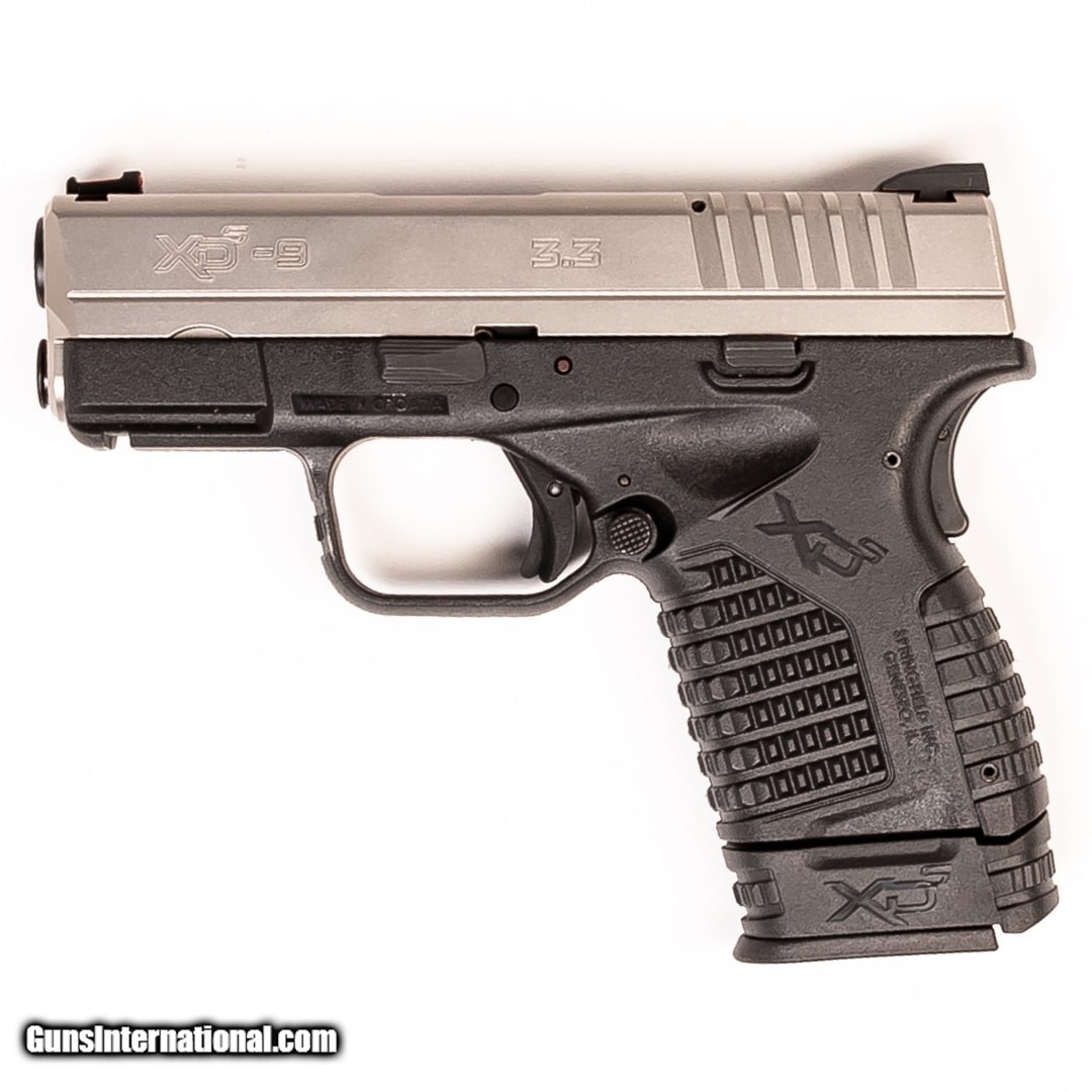 Description: Guns Listing ID: 502853 The Springfield Armory XDS-9 3.3\" was designed to be the new standard in daily carry guns, and it doesn‚‚t disappoint. It boasts impressive ergonomics, reliability, and power. Overall, this is an affordable compact handgun that will perform well for personal protection. This XD includes one 8-round magazine, one 7-round magazine, backstraps, a right-handed IWB and OWB holster, and the orignal case with the manual SOLD Manufacturer: SPRINGFIELD ARMORY Model: XDS-9 3.3 Caliber Info: 9MM LUGER Condition: Used - Certified Barrels: 3.3 BARREL Finish: TWO-TONE STAINLESS |