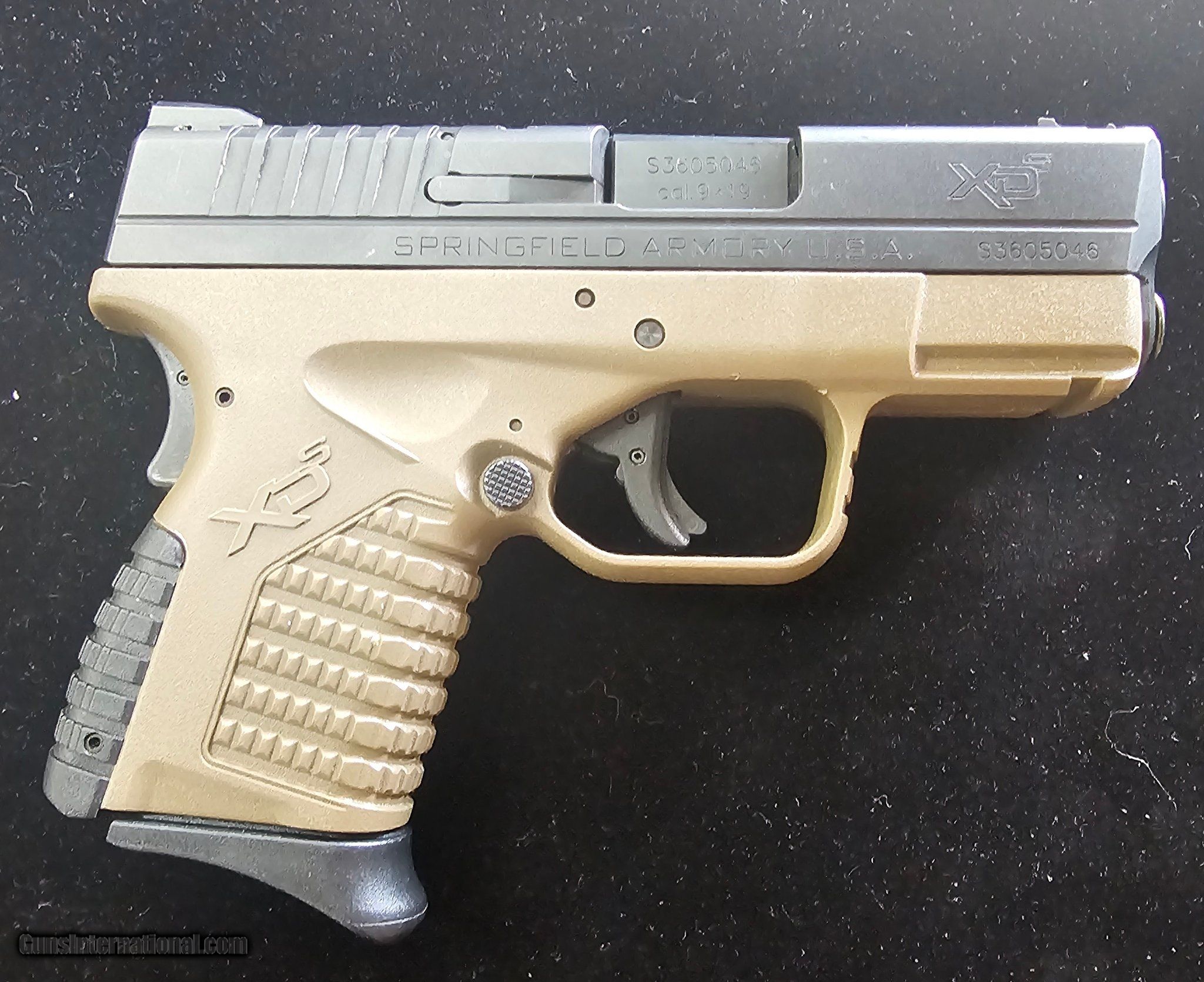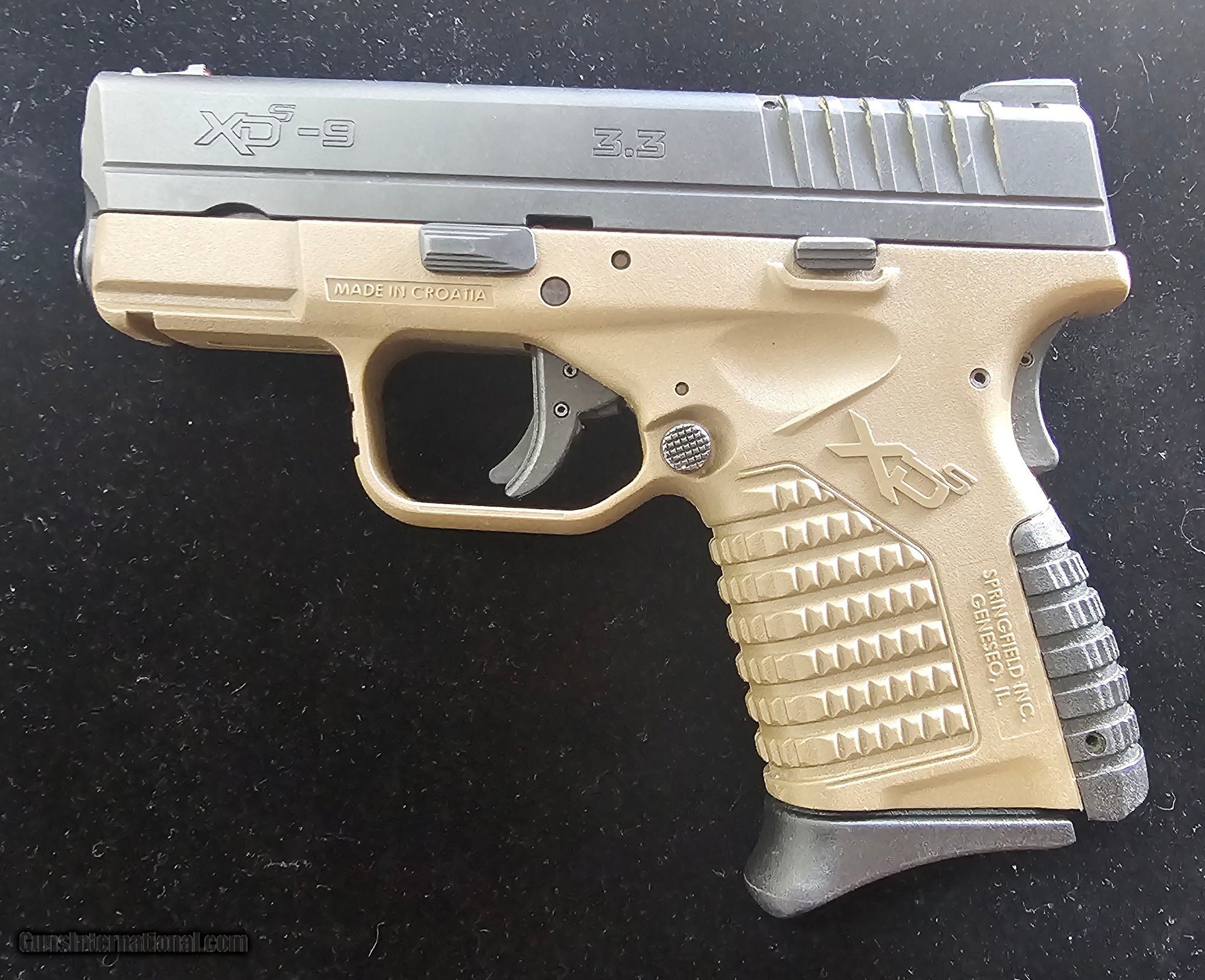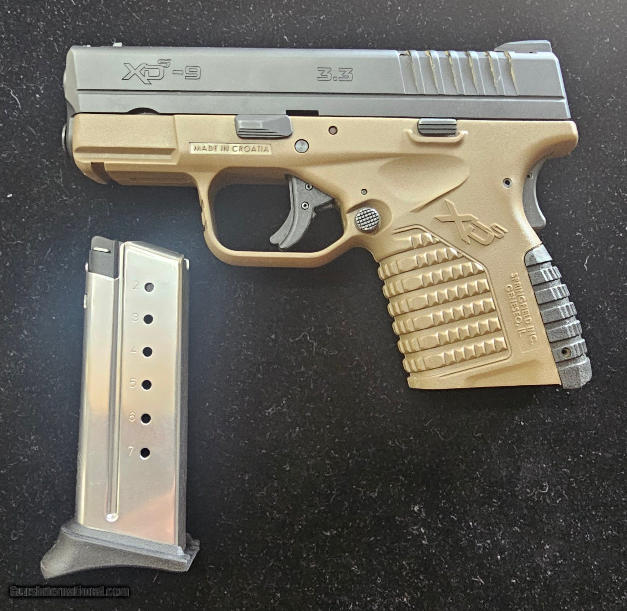 Description: Guns Listing ID: 489443 For Sale: Springfield Armory XD-S 9mm 3.3\" – Two-Tone Tan and Black, Factory Magazine Condition: Excellent (Very Good) Description: For sale is a Springfield Armory XD-S 9mm 3.3\", a compact and reliable handgun designed for concealed carry and personal defense. This model features a two-tone finish with a tan frame and black slide, giving it a sleek and tactical appearance. It includes one factory magazine and offers a comfortable 3.3-inch barrel for improved concealability while maintaining accuracy. Key Features: Caliber: 9mm Barrel Length: 3.3 inches (compact size for easy carry) Finish: Two-tone tan frame with a black slide Grips: Textured polymer for a secure hold Magazine: Includes one factory magazine Action: Semi-automatic Condition: Excellent – minimal signs of use, well-maintained Made in: USA Ideal for: Concealed carry, personal defense, and range shooting Additional Info: The Springfield XD-S is known for its slim profile, ease of carry, and effective stopping power. The two-tone finish adds a unique touch, while the lightweight design ensures comfort during everyday carry. Whether you‚‚re new to concealed carry or an experienced shooter, the XD-S 9mm offers a reliable and versatile option SOLD Manufacturer: SPRINGFIELD ARMORY Model: XDS-9 Condition: Used - Non-Certified Barrels: 3 Gauge Info: 9MM LUGER (9x19 PARA) Finish: black and tan |