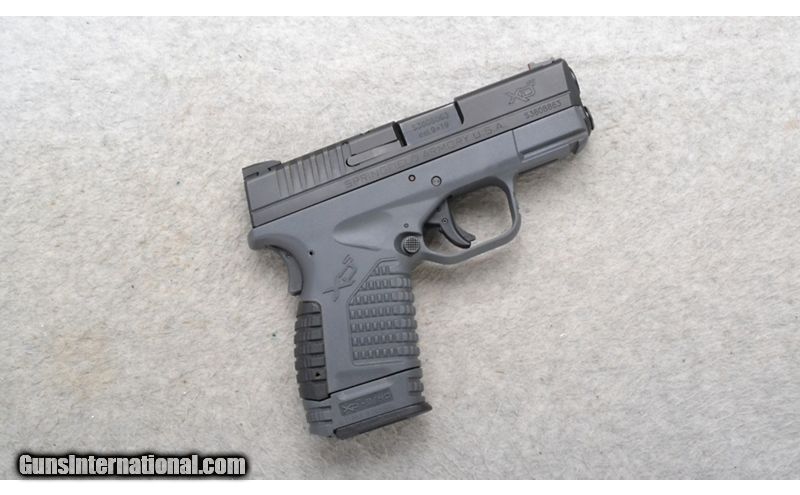 Description: This Springfield Armory Model XDs-9 is a right hand semi-auto pistol in 9mm Cal. It has a 3.3 inch barrel with a rear serrated slide. A red high visibility front sight and a notch rear sight with 2 white sight dots. The grip is a deep checkered black polymer with an interchangeable backstrap. It has a lower accessory rail. 9mm Parabellum SOLD Chambers: 8 & 7 round magazines. Metal Condition: Excellent. Bore Condition: Excellent. Barrels: 3.3 inch barrel with a rear serrated slide. Weight: 22 oz. Sights: Red high visibility front. Notch rear with 2 white sight dots. Item Location: Richfield, WI |