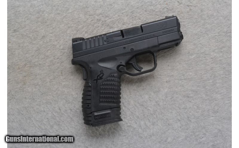 Description: This Springfield Armory Model XDs-9 is a right hand semi-auto pistol in 9mm Cal. It has a 3.3 inch barrel with a rear serrated slide. A red high visibility front sight and notch rear sight with 2 white sight dots. The grip is a deep checkered black polymer. It has a lower accessory rail. 9mm Parabellum SOLD Chambers: 8 round magazine. Metal Condition: Excellent. Bore Condition: Excellent. Barrels: 3.3 inch barrel with a rear serrated slide. Weight: 22 oz. Sights: Red high visibility front. Notch rear with 2 white sight dots. Item Location: Richfield, WI |