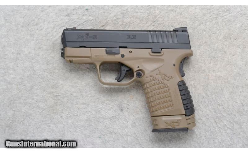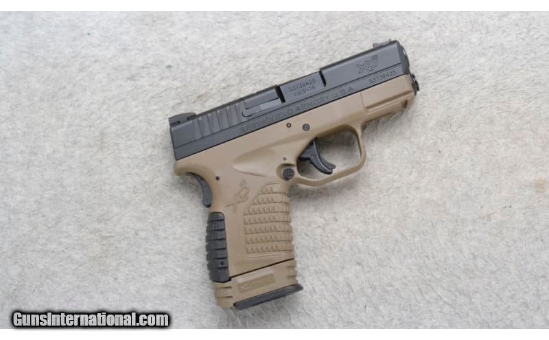 Description: This Springfield Armory Model XDS-9 is a right hand semi-auto pistol in 9mm Cal. It has a 3.3 inch barrel with a rear serrated slide. A red high visibility front sight and a notch rear sight with white sight dots. The grip is a deep checkered FDE polymer. It has a lower accessory rail. 9mm Parabellum SOLD Chambers: 8 shot magazine. Metal Condition: Very Good. Bore Condition: Excellent. Barrels: 3.3 inch barrel with a rear serrated slide. Weight: 22 oz. Sights: Red high visibility front. Notch rear with white sight dots. Item Location: Richfield, WI |