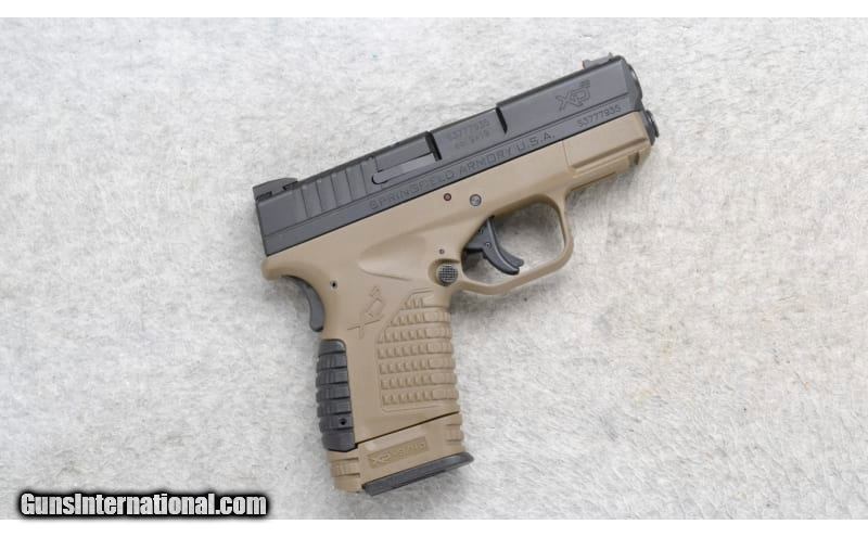 Description: This Springfield Armory Model XDS-9 is a right hand semi-auto pistol in 9mm Cal. It has a 3.3 inch barrel with a rear serrated slide. A red high visibility front sight and a notch rear sight with white sight dots. The grip is a checkered polymer. It has a lower accessory rail. 9mm Parabellum SOLD Chambers: 8 shot magazine. Metal Condition: Very Good. Bore Condition: Excellent. Barrels: 3.3 inch barrel with a rear serrated slide. Weight: 24 oz. Sights: Red high visibility front. Notch rear with white sight dots. Item Location: Richfield, WI |