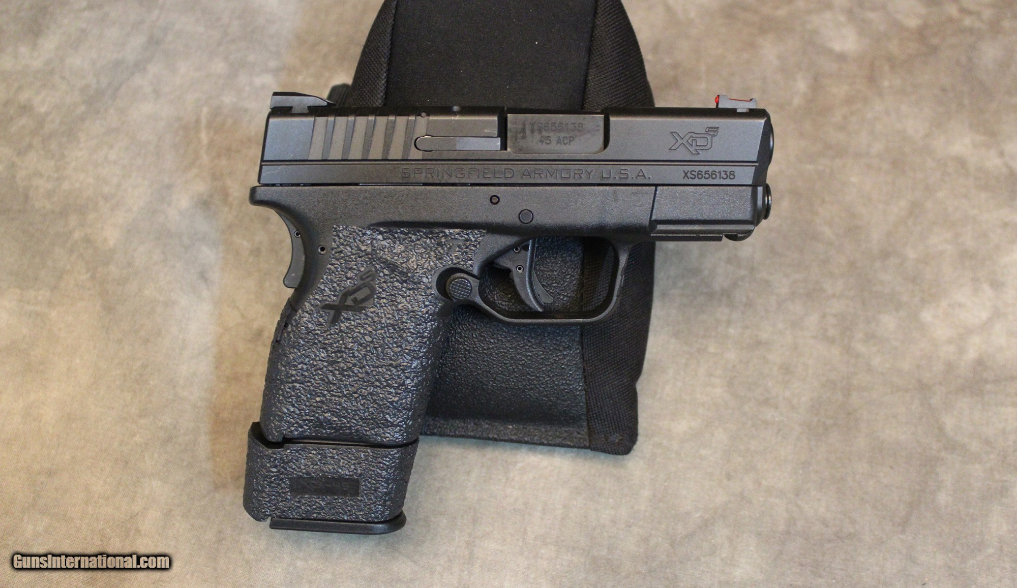 Description: This Springfield Armory XDS is in excellent condition. It shows very little evidence of use. The grip has been enhanced by a well done application of grip tape. It would make a nice carry or home defense gun. .45 ACP SOLD Chambers: .45 ACP Metal Condition: Excellent Bore Condition: Excellent Barrels: 3.3 Weight: 24 Oz Sights: "White 2 dot rear, red fiber optic front Item Location: Columbia, MO |