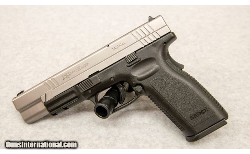 Description: Springfield XD Tactical, chambered in .45 ACP, with a 13 round magazine. Features include: lightweight polymer frame, bi-tone finish, steel slide, SA striker fired with U.S.A. trigger system, firing pin and loaded chamber indicators, dual recoil spring system, polymer frame with lower Picatinny rail, ambidextrous mag. release, grip safety, front and rear slide serrations .45 ACP SOLD Chambers: .45 ACP Metal Condition: Very Good Bore Condition: Very Good Barrels: 5' Sights: 3 Dot Item Location: Fort Mill, SC |