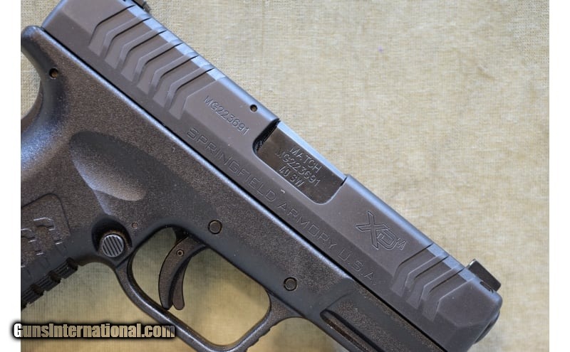 Description: Springfield Armory model XDM-40 is a semi-auto pistol chambered in .40 S&W in excellent condition. The Springfield has a 3.5" barrel and has a 16 round magazine. This pistol does not come with anything. .40 S&W SOLD Metal Condition: Excellent Bore Condition: Bright and Shiny Barrels: 3.5 Weight: 2 lbs Sights: 3 White DOTS Item Location: Chesterfield, MI |