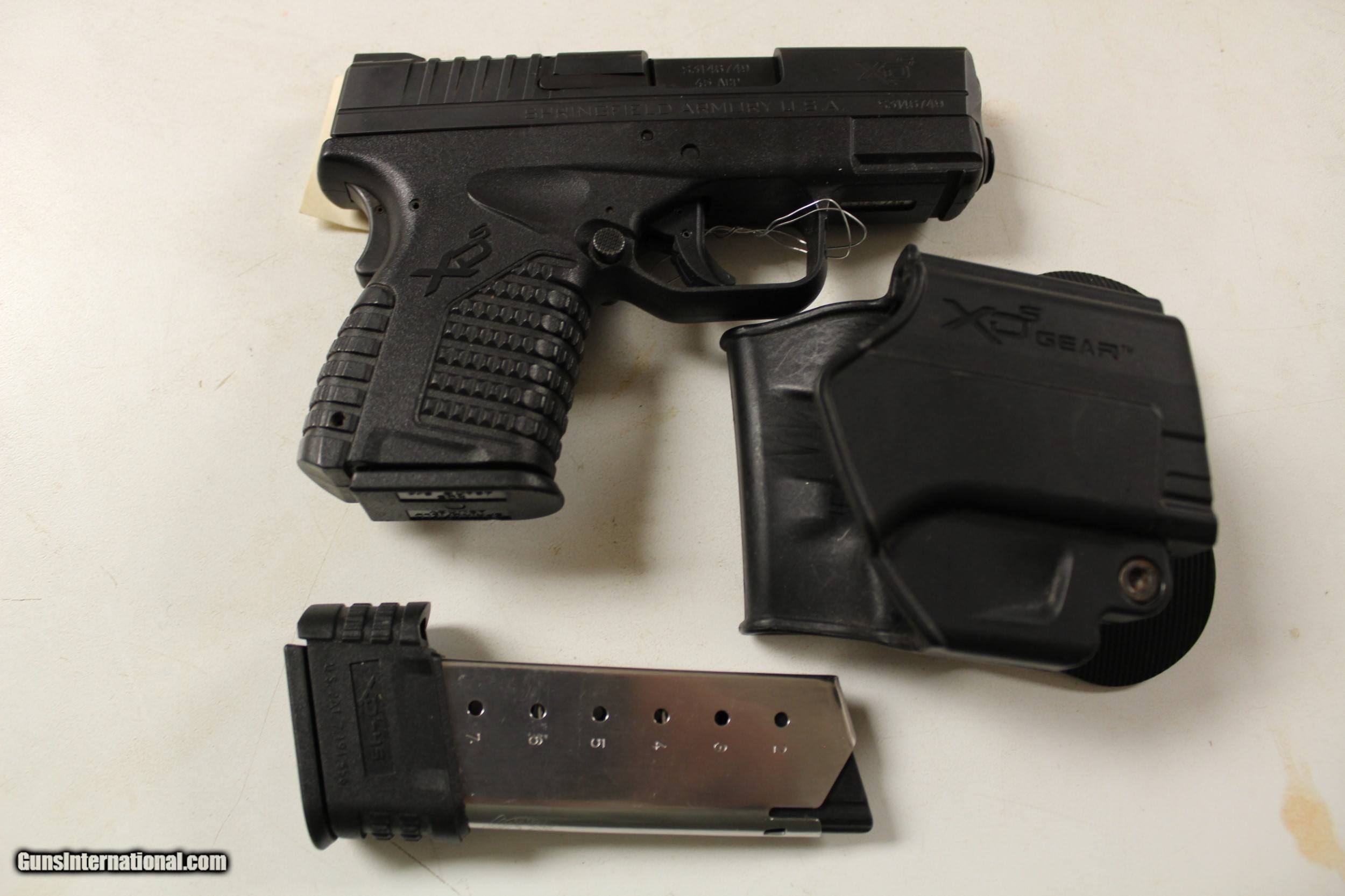 Description: Springfield, XDs, 45 auto, compact,light wear on sharp edges, overall finish 95%+, white dot rear/red fiber optic front sights, comes with XD holster-5 round & 7 round mags, FREE SHIPPING, NO CARD FEE. SOLD Manufacturer: Springfield Armory Caliber Info: 45 acp Condition: Very Good Metal Condition: 90-95% |