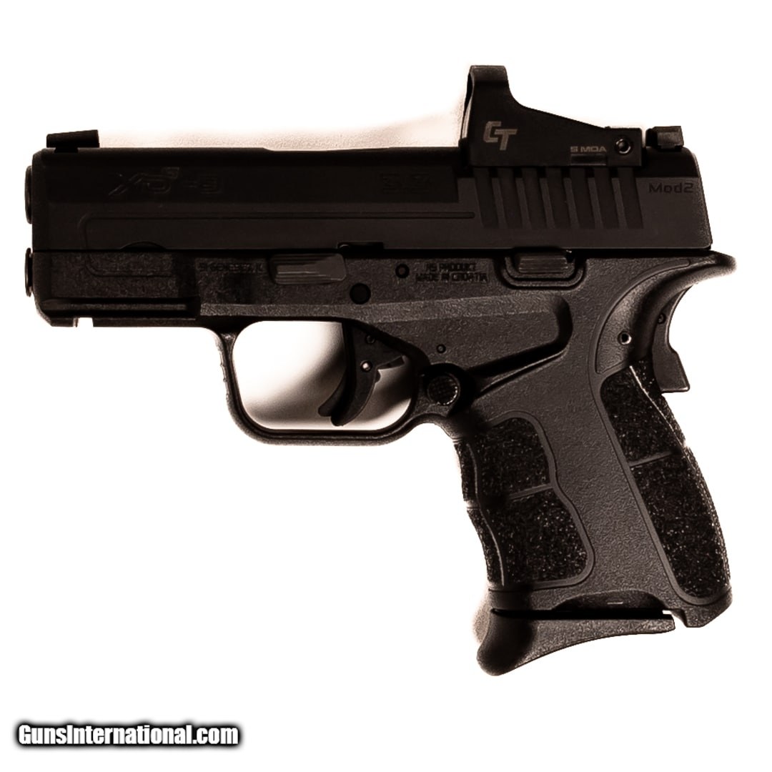Description: Guns Listing ID: 694655 The XD-S 3.3” Mod. 2 Single Stack 9mm pistol is the deep-cover defensive pistol that goes anywhere. With an overall width of less than 1”, three separate safety systems, and 9+1 rounds of 9mm onboard, this XD-S® serves alongside your cell phone and car keys as part of your daily loadout. Wherever you are, this XD-S is always on duty. This Springfield Armory XDS-9 3.3 Mod. 2 comes with 1-9 round magazine, 1-7 round magazine, the original box, soft case, manual, and a Crimson Trace red dot. Get the best bang for your buck when you get a Certified Used Firearm . When you see the Certified Used stamp on any of our firearms, you can be confident that you’re getting exactly what you want – a gun only in very good to excellent condition and held to the highest quality standard. All Certified Used Guns come with a ‘no questions asked’ return policy . PLUS, ALL CERTIFIED USED GUNS SHIP FREE! SOLD Manufacturer: SPRINGFIELD Model: XDS-9 3.3 MOD2 Caliber Info: 9MM LUGER (9X19 PARA) Condition: Used - Certified Barrels: 3.3 barrel Finish: BLACK |