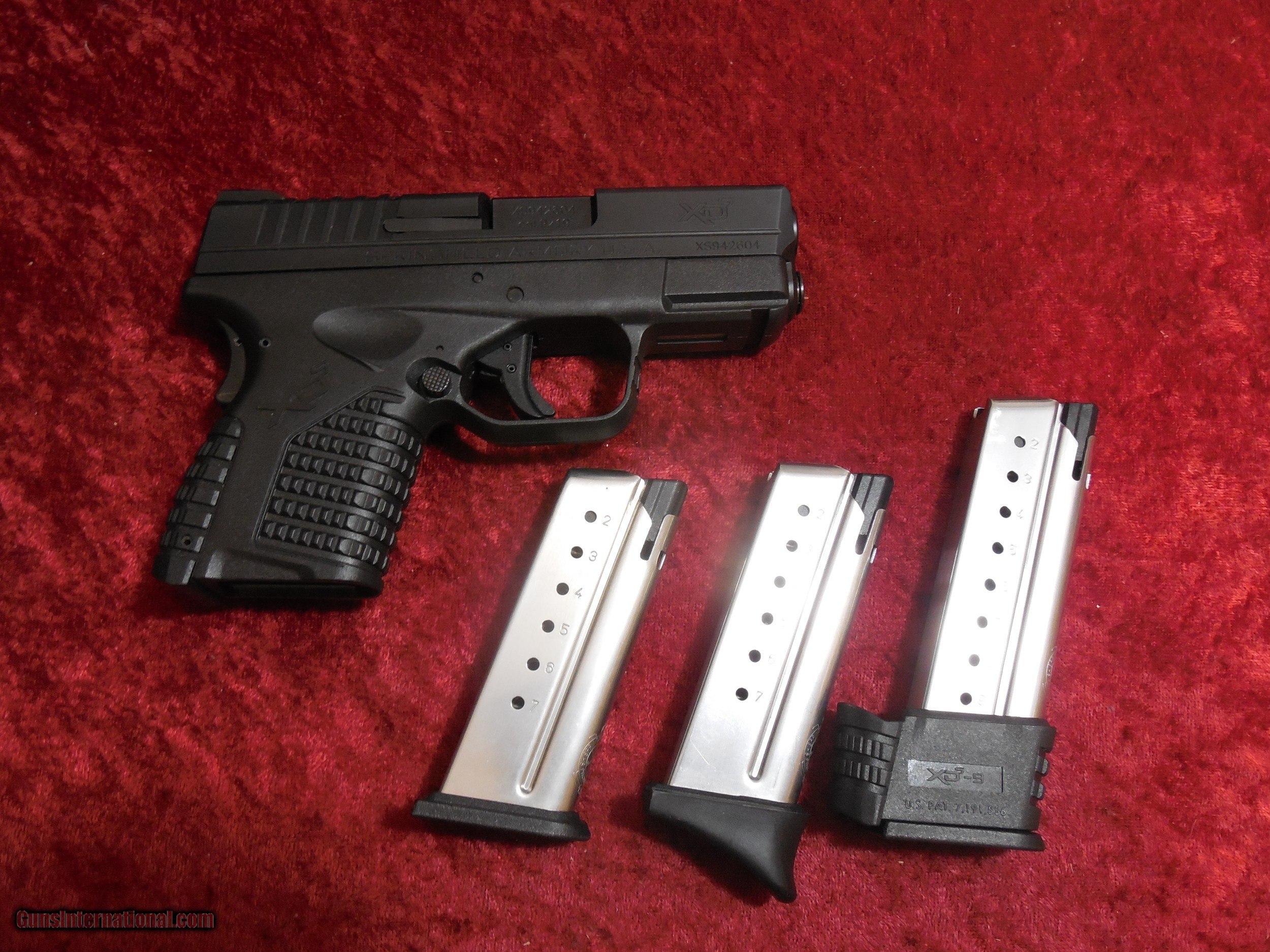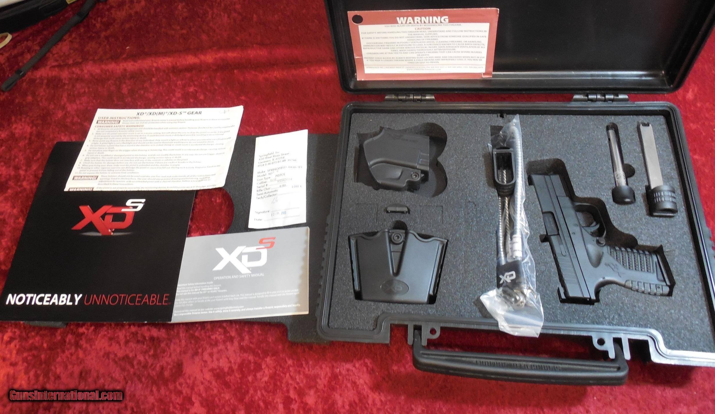 Description: Springfield XDS 9 mm 3.3" barrel 7-rds Black #XDS9339B Like NEW in box!! Like New in box with Accessories & 3 mags Here is a Like New in box Springfield XDS 9 mm semi-auto pistol, comes with Fiber Optic Front Sight, 3 mags (2) 7-rd & (1) 9-rd, in a plastic hard case with the holster, mag holder, etc. Please see pictures of actual pistol.