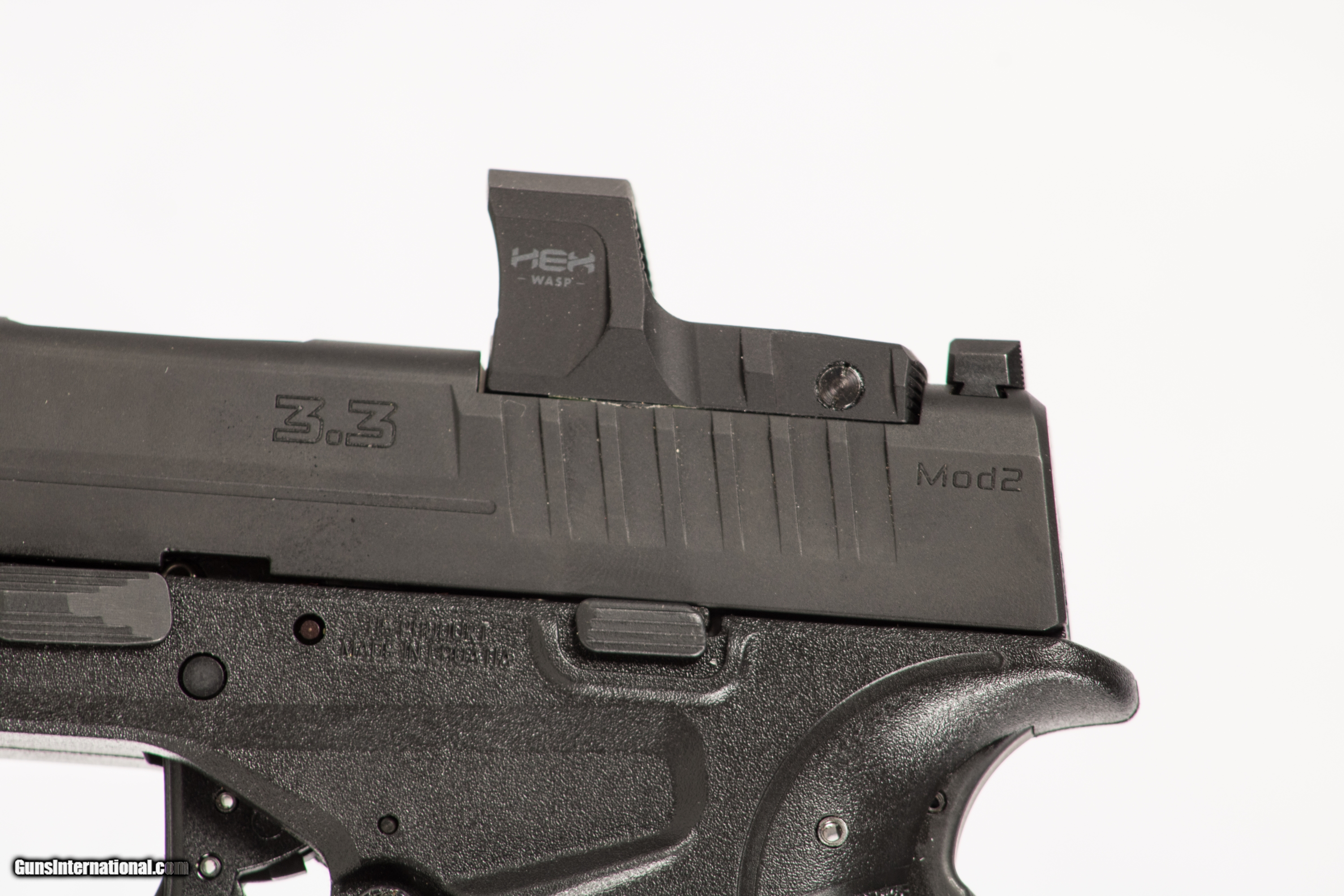 Springfield XDS chambered in 9 mm with a 3 1/4 inch barrel bright & shiny bore original box soft case extra magazine and red dot sight. This gun is in excellent condition and is covered by Dury's Lifetime Warranty.