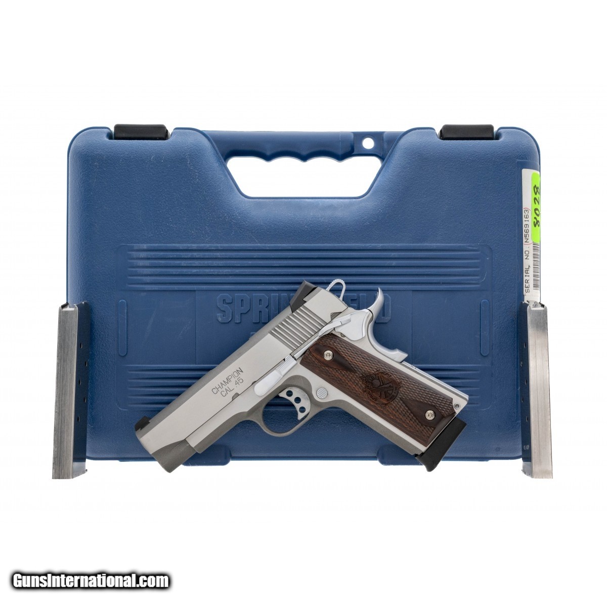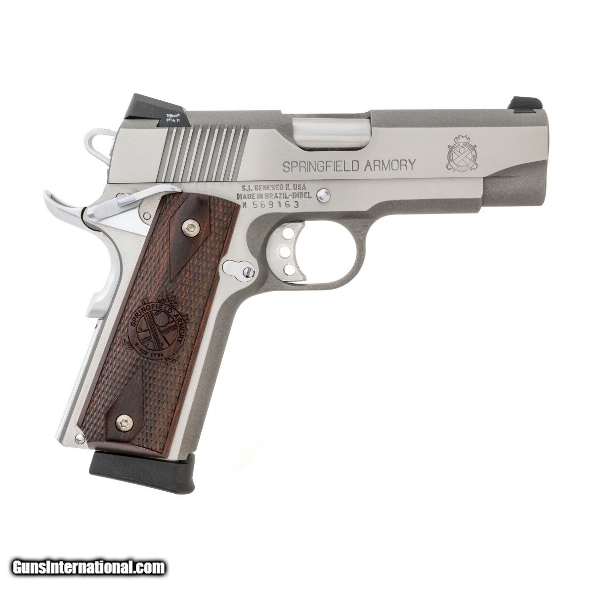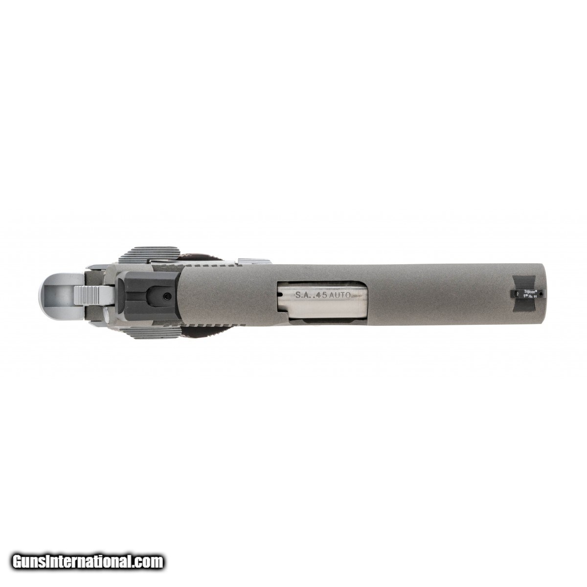 SN:N569163. Single action 4"" 1911 with rose-colored checkered grips and a S.S. finish. In excellent condition. Comes in box with 2 spare mags and Kydex pistol & magazine OWB holsters.