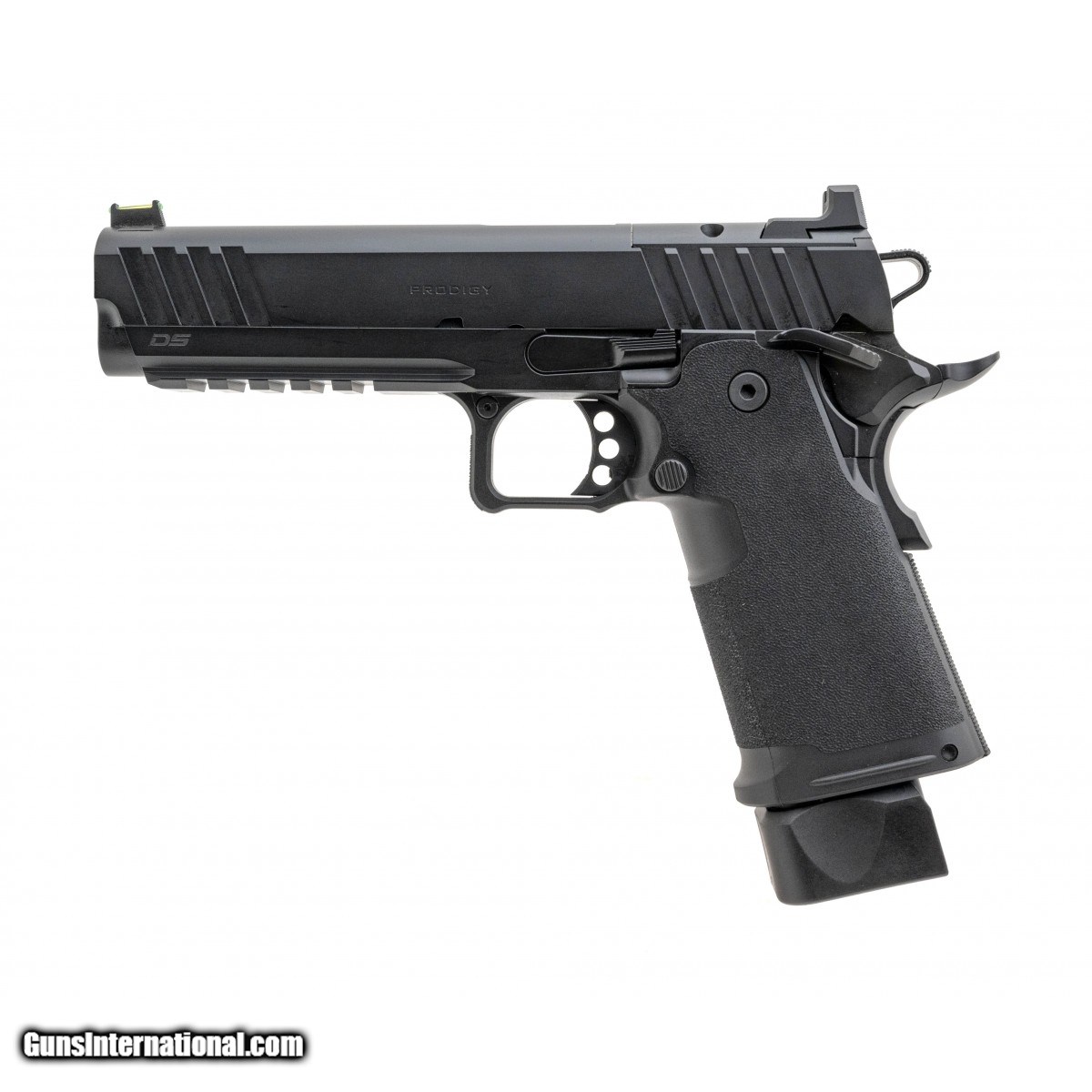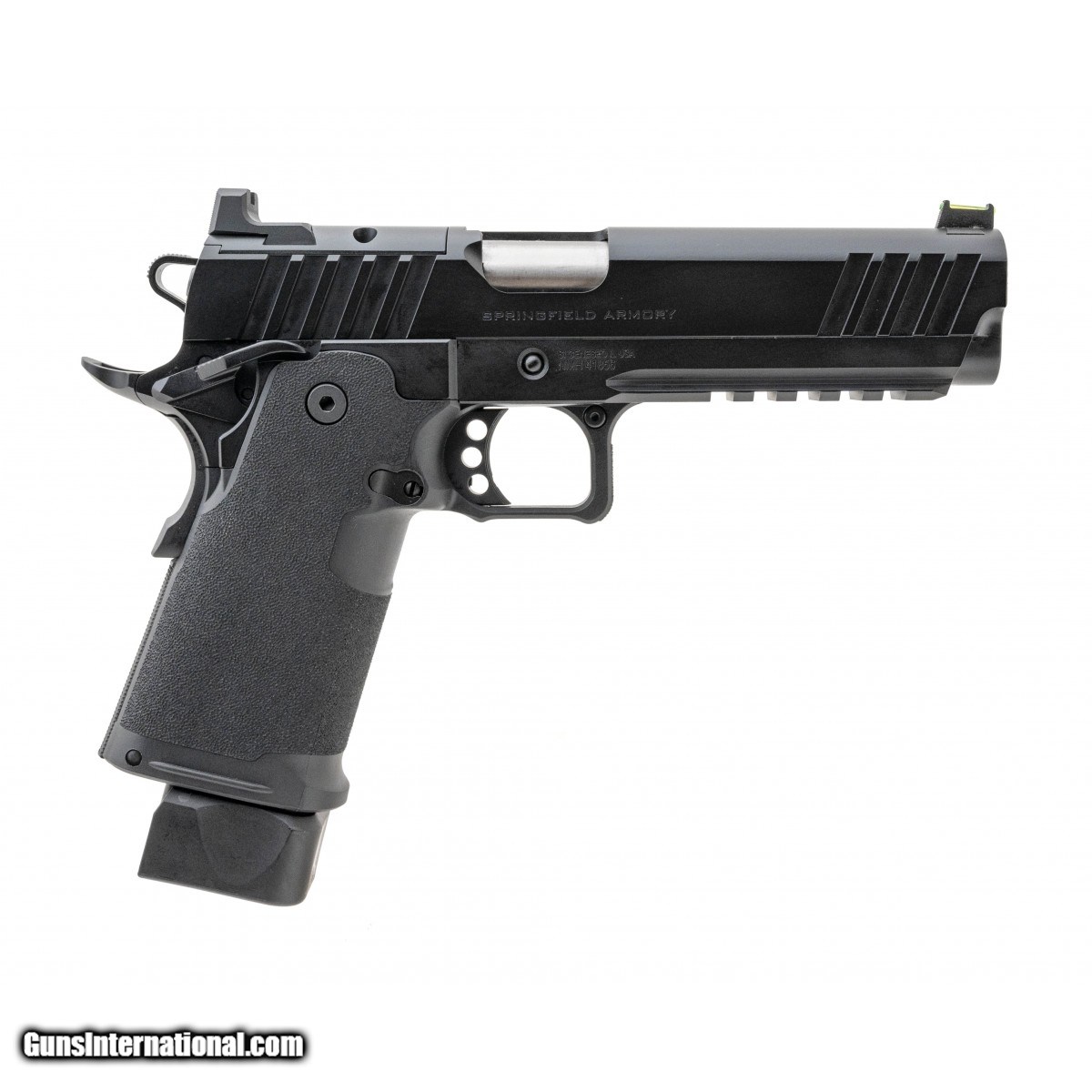Optics ready double stack 1911 chambered in 9mm. Has a 5"" barrel, green fiber optic front sight, u-notch rear sight, textured grip, and an ambidextrous safety. Includes a pistol pouch, one 17 round magazine and one 20 round magazine. NEW. UPC:706397964474.