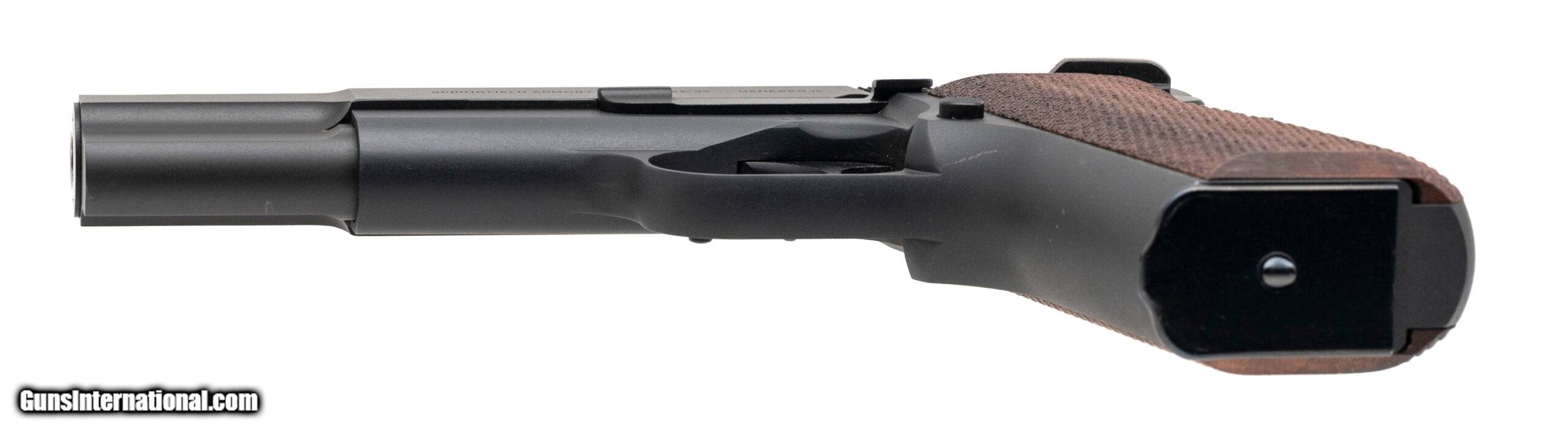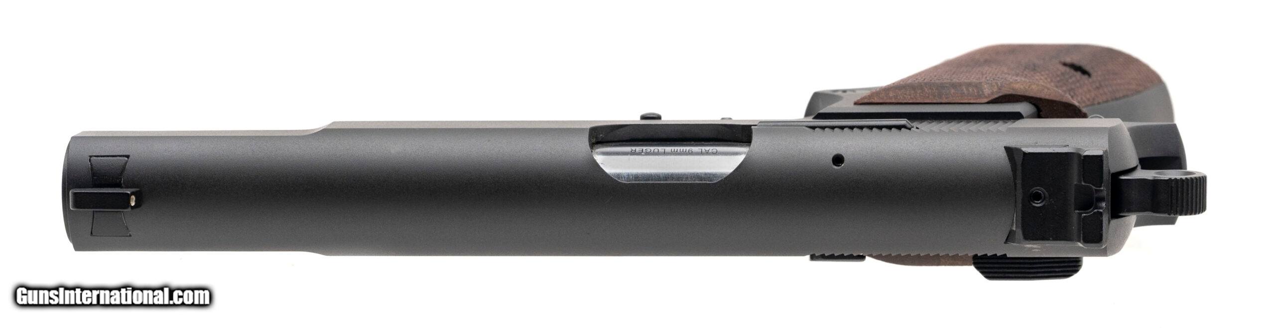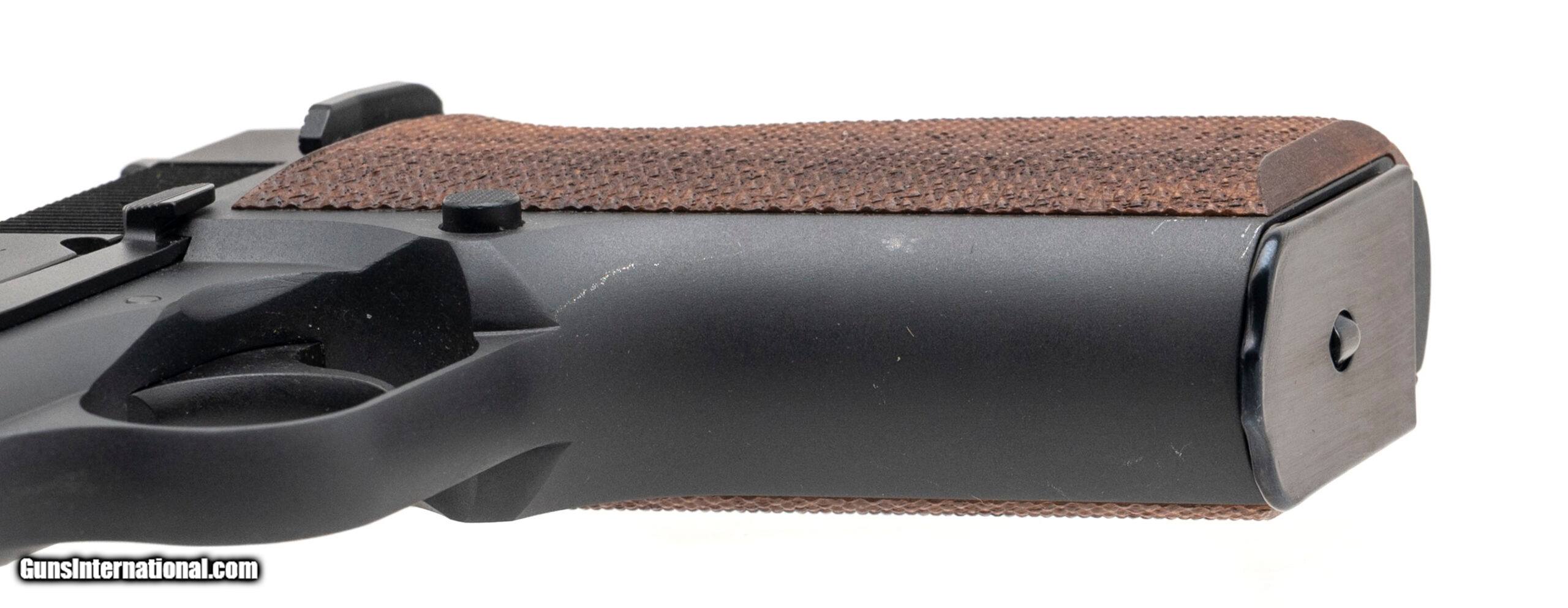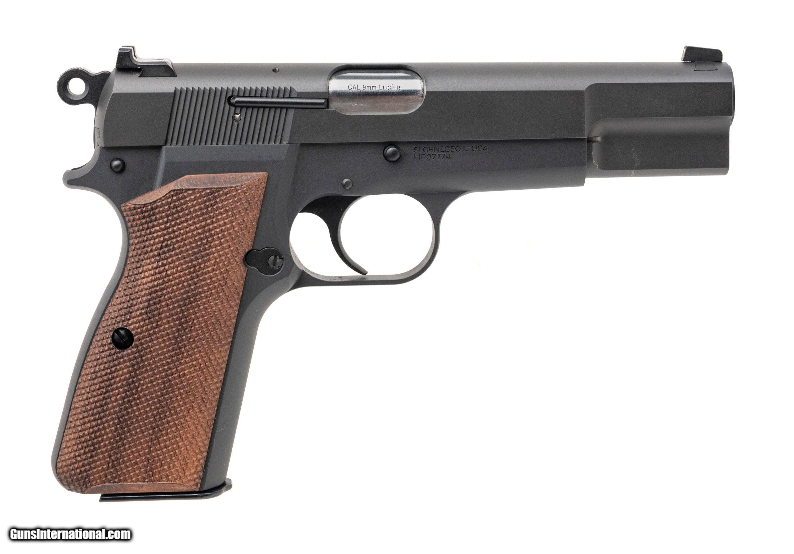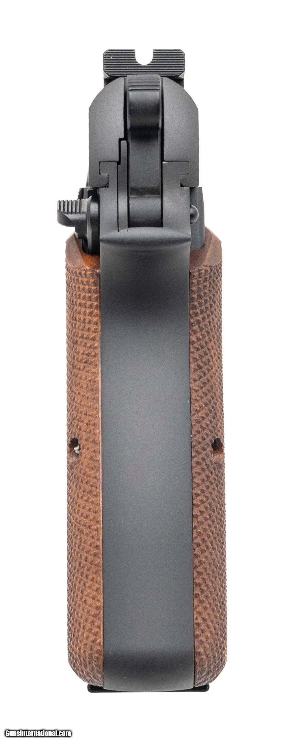 Description: "SN: HP37774. Modern production, 9mm with a 4.7"" barrel. Bore is excellent. Single-action only steel frame pistol with a manual thumb-safety, matte blued finish, and checkered wood grips. Metal shows minor handling marks. Overall condition is very good. Includes an additional magazine, soft carry bag, and original box. Price: $649.95 Contact Seller |