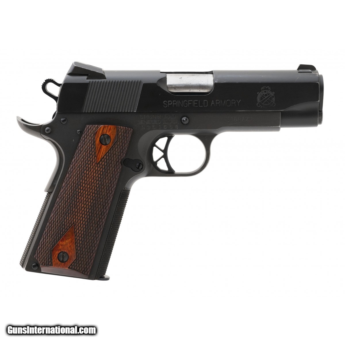 Description: " SN: N361688. Springfield custom shop compact 1911 with 4"" stainless barrel, Novak sights, extended beavertail and skeletonized trigger and hammer. Overall very good condition. SOLD |