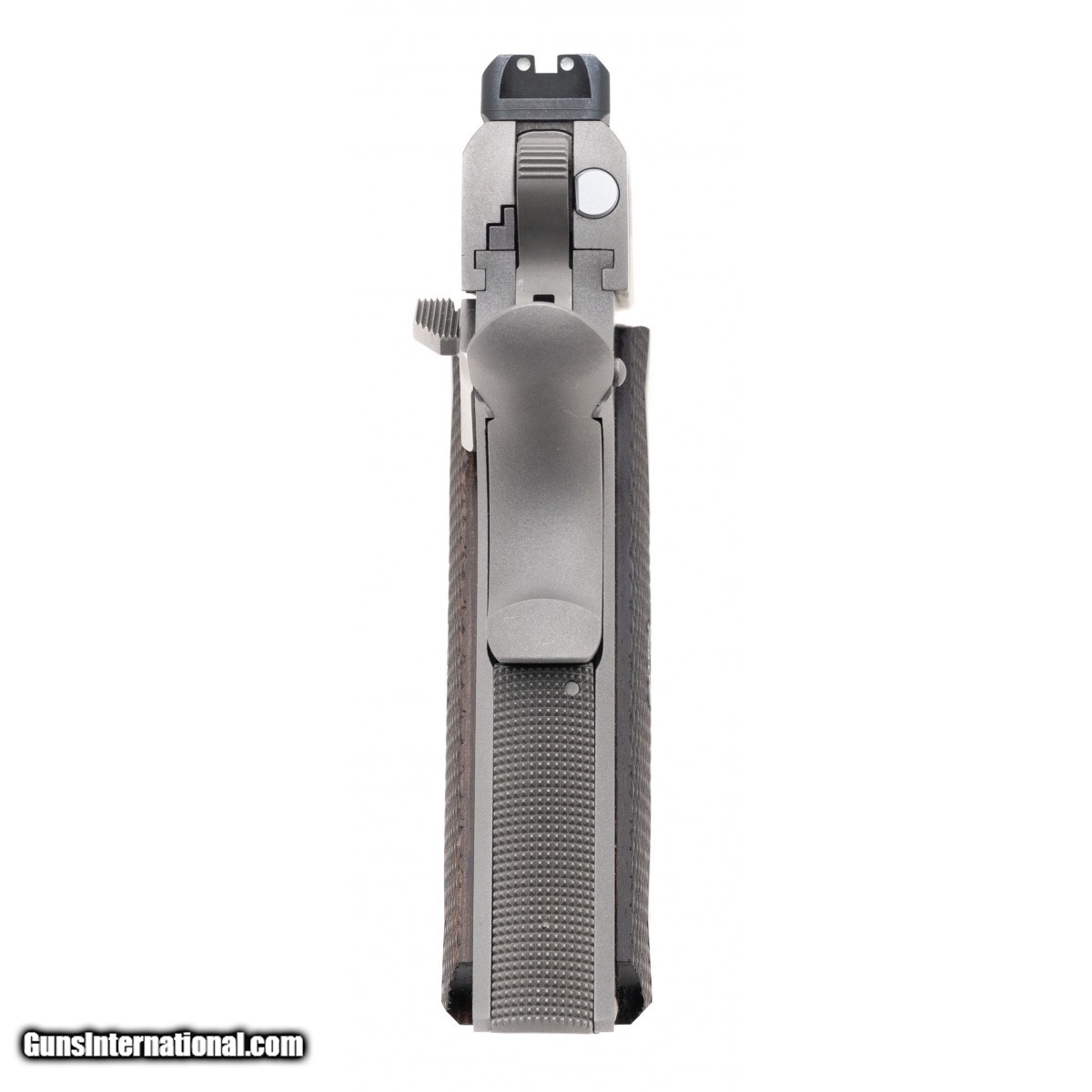 NM838629. Modern production. .45ACP with a 5"" barrel, bore is excellent. Full size 1911 frame handgun, match grade barrel, low profile 3 dot sights and thin wood grips. Overall in excellent condition. Comes with box and range bag.