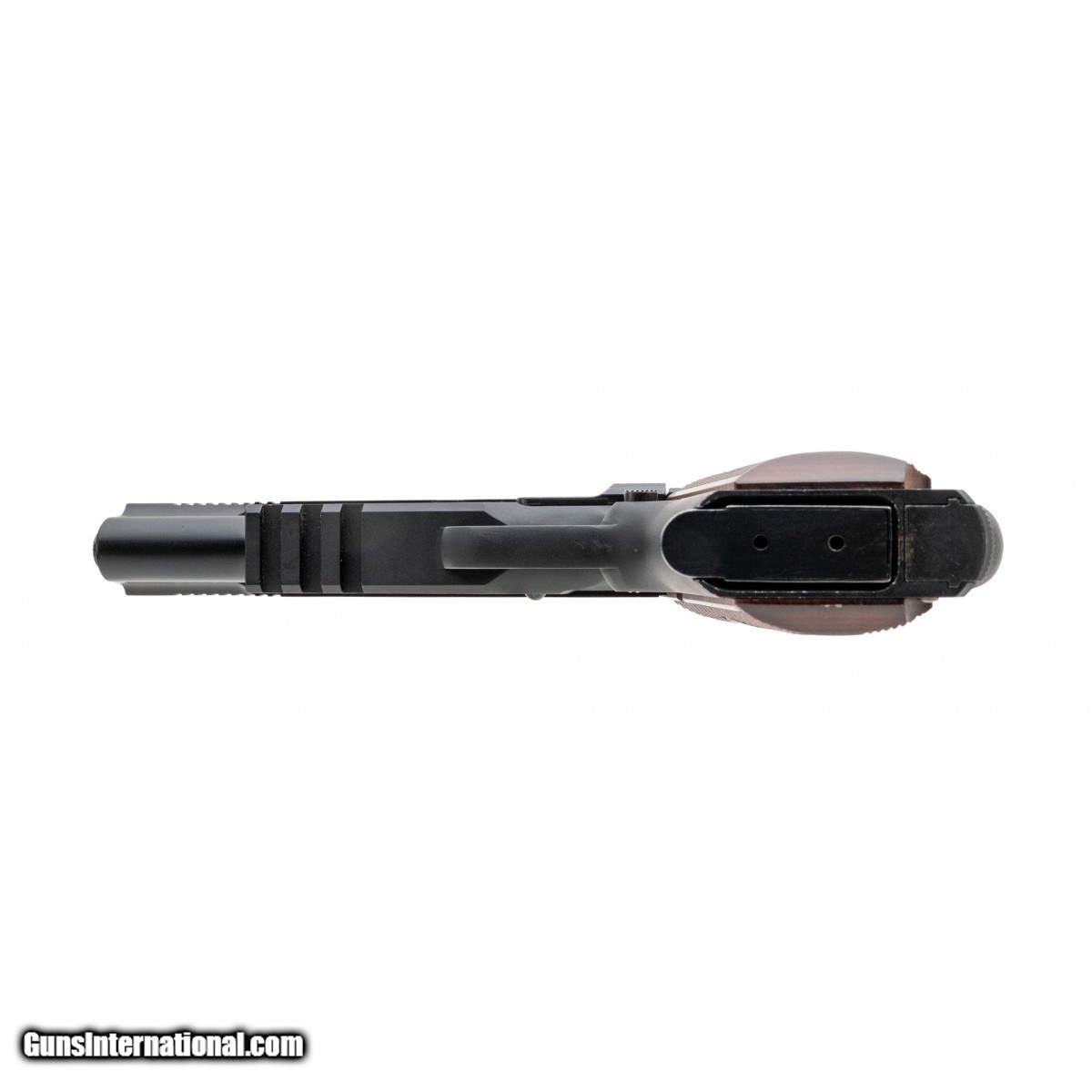 Description: "SN: LW140404. Modern production. .45ACP with a 5"" barrel. Bore is excellent. Aluminum frame 1911. Black finish is in excellent condition. Wood checkered grips are in near perfect condition with minimal handling wear. Comes with original case with a holster. mag carrier, and 2 extra magazines. Overall condition is excellent. SOLD |