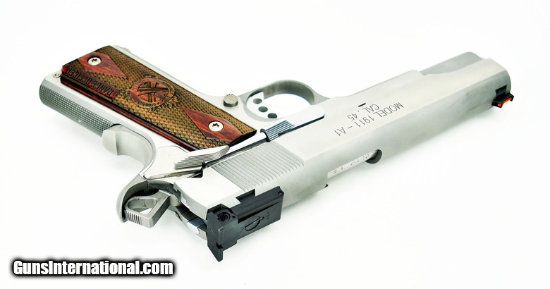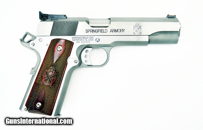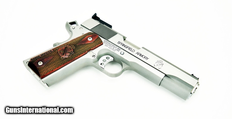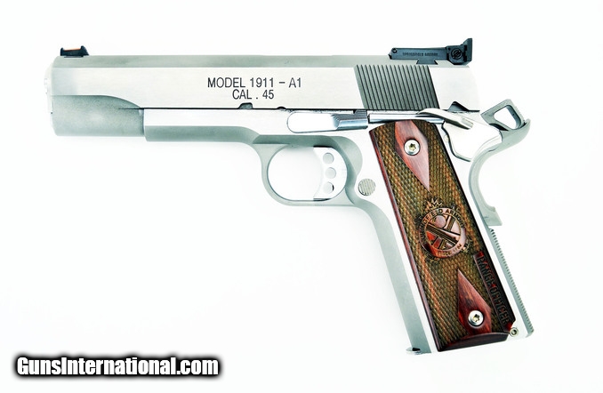 Description: " Springfield 1911 A1 .45 ACP caliber pistol. Stainless steel Range Officer with adjustable sights and gear. New. SOLD |