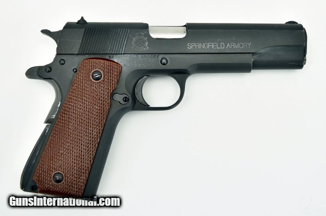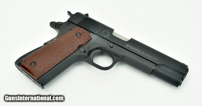 Description: Springfield 1911-A1 .45 ACP caliber pistol. Mil-Spec model with parkerized finish in excellent condition.