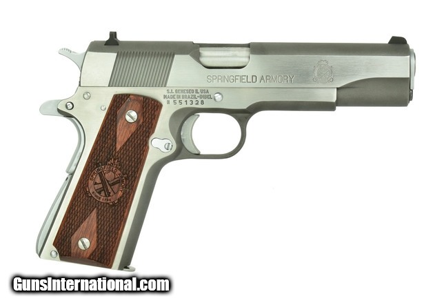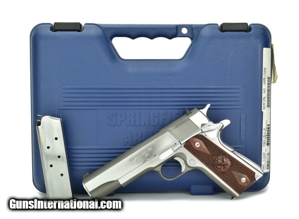 Description: Springfield 1911 A1 .45 ACP caliber pistol. Stainless Mil-Spec model in very good condition with box and magazine.