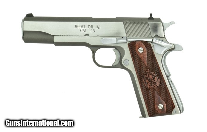 Springfield 1911 A1 .45 ACP caliber pistol. Stainless Mil-Spec model in very good condition with box and magazine.