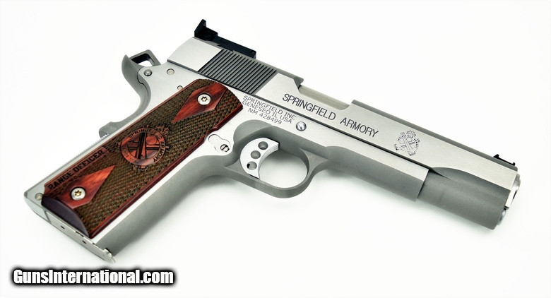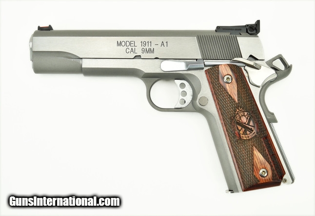 Description: Springfield 1911 A1 9mm caliber pistol. Stainless steel range officer with adjustable sights and gear. New. SOLD |