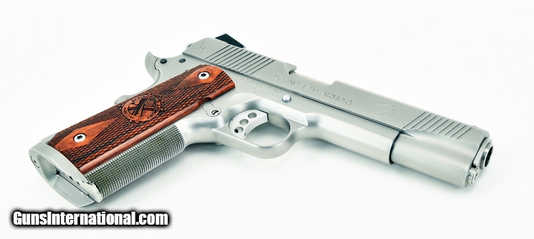 Springfield 1911-A1 TRP .45 caliber pistol. Tactical response pistol with stainless finish.