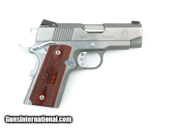 Description: Springfield Armory Ultra Compact .45 ACP Stainless steel 3 ½” carry gun with night sights. Excellent condition with box, gear, and extra magazine.