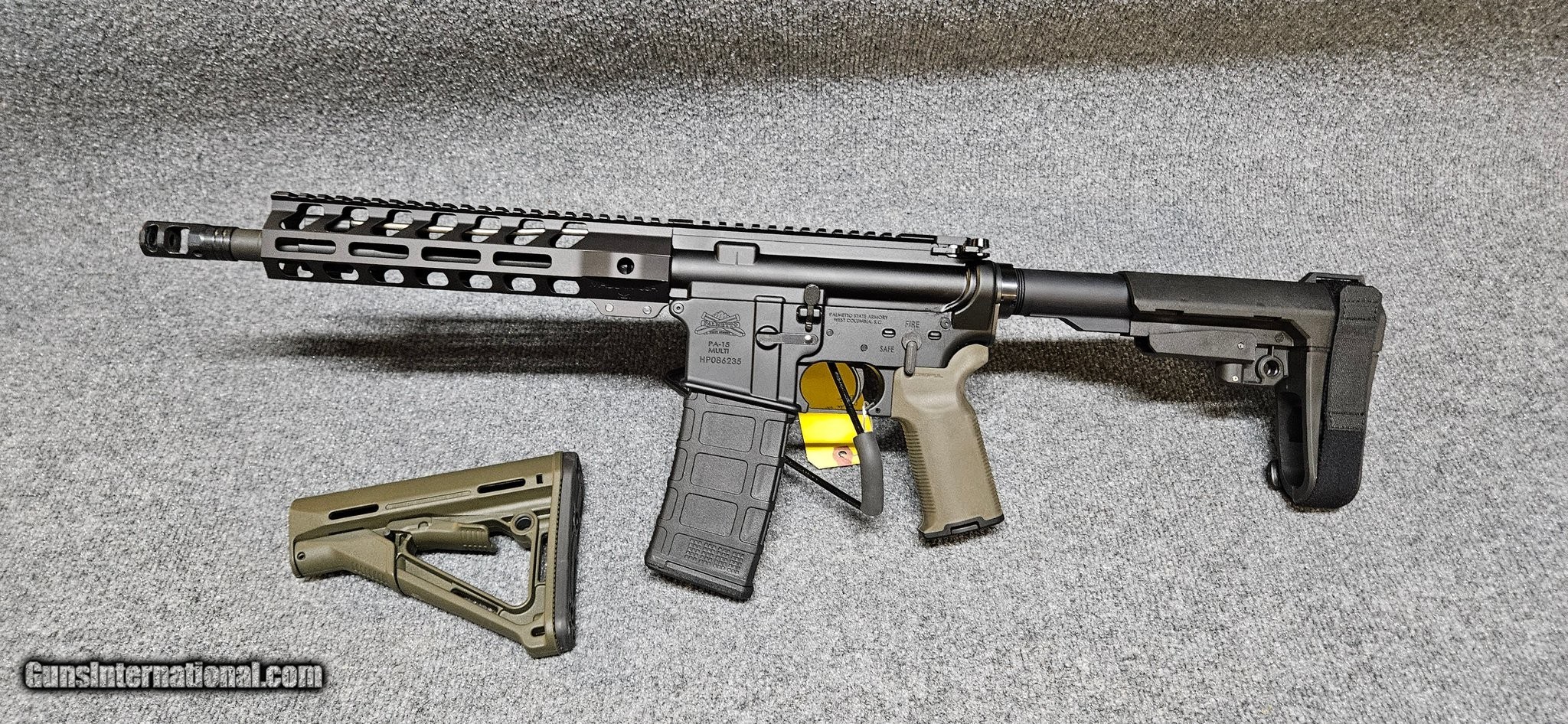 Description: Guns Listing ID: 572609 Palmetto State Armory ARP AR-Pistol — 5.56 NATO / .223, SBA Brace, 10.5\" Barrel, Lifetime Warranty Barrel: Barrel is made for Palmetto State Armory by FN Manufacturing using their proprietary blend of hammer forged chrome molly vanadium that is referred to as \"Machine Gun Steel\" by virtue of its use in FN‚s M249 and M240 weapons. The hammer forging process work hardens the steel, making it more durable. In addition, the chrome process for the bore allows for a lining almost twice as thick as a standard M16 for enhanced durability. Chambered in 5.56 NATO, with a 1:7 twist, M4 barrel extension with extended feed ramps, and a carbine gas system. The barrel has an A2 style profile, is Mil-spec phosphate coated, and MPI/HPT tested. The upper is finished off with a .750\" low profile gas block, PSA 9\"Lightweight Hex Full Picatinny M-Lok Free Float Rail, and an A2 flash hider. Upper: Forged 7075-T6 A3 AR upper is made to MIL-SPECS and hard coat anodized black for durability. Featuring machined T marks, and a mil-spec finish. These uppers are made for us right here in the USA by a mil-spec manufacturer. Bolt Carrier Group: ToolCraft nickel boron BCG has a bolt made of mil-spec shot-peened Carpenter 158 steel. Gas key is secured with grade 8 fasteners and staked per mil-spec. Each upper is assembled to order with care, and test fired. Details Barrel Length: 10.5\" Gas System: Carbine Length Barrel Profile: A2 Style Barrel Steel: Cold Hammer Forged Chrome Moly Vanadium Barrel Finish: Phosphate Chrome Lining: Yes, bore and chamber Muzzle Thread: 1/2-28 Chamber: 5.56 NATO Twist Rate: 1:7 Barrel Extension: M4 Diameter at Gas Block: .750 Gas Block Type: .750 Low Profile Muzzle Device: Upgraded Brake Receiver Material: Forged 7075 T6 Receiver Type: M4 Handguard Type: PSA 9\"Lightweight Hex Full Picatinny M-Lok Free Float Rail Bolt Carrier Group Included: Yes Bolt Steel: Nickel Boron, Carpenter 158 Bolt Carrier Profile: Full-Auto Charging Handle Included: Yes Overall Length: 19\" Features This Complete Palmetto State Armory Pistol Lower with SB Tactical SBA3 Adjustable Brace is fully assembled and ready for your Pistol Upper! • Receiver is machined from 7075-T6 Aluminum Forgings • Hardcoat Anodizing: MIL-A-8625F, Type III, Class 2 • 7075 Receiver Extension • A2 Classic grip, Black • SB Tactical SBA3 Adjustable Brace, Black • USGI Classic trigger guard, Black • Standard Carbine Buffer • Un-notched Hammer compatible with 9mm use • Caliber: Multi Details PSA AR15 Complete Stealth Classic SBA3 Lower Receiver is Machined from 7075-T6 Aluminum Forgings Hardcoat Anodizing: MIL-A-8625F, Type III, Class 2 7075 Receiver Extension Magpul grip, ODG SB Tactical SBA3 Adjustable Brace, Black USGI Classic trigger guard, Black Standard Carbine Buffer Un-notched Hammer compatible with 9mm use Caliber: Multi History & Brand / Model Background Palmetto State Armory (PSA) was founded in 2008 in South Carolina and initially sold magazines and parts before expanding into manufacturing its own firearms and components. PSA backs its firearms with a 100% lifetime warranty, transferable to subsequent owners. The “ARP" is PSA’s AR-pistol offering — essentially the AR platform in compact pistol form (barrel < 16", no shoulder stock unless regulated). The ARP sits alongside PSA’s rifle / carbine line, giving users a legal “pistol" version of their AR designs. Because AR-style pistols are relatively new in mainstream commercial offerings, they occupy a niche between traditional pistols and short-barreled rifles, offering compact handling without some of the extra regulatory overhead (where legal). Specifications & Features Feature Specification Caliber 5.56 NATO / .223 Barrel Length 10.5" (measure to muzzle device) Barrel : FN Barrel Gas System: Carbine length Bolt / Carrier Nickel Boron Handguard / Rail Free-float / M-LOK Muzzle Device Upgraded Brake Brace / Buffer Setup: SBA3 Magazine: 30-round (or capacity permitted in your jurisdiction) Warranty PSA lifetime warranty Condition Overall Condition: Excellent Barrel / Bore: bright, sharp rifling Metal / Finish: original finish intact Controls & Operation: safety, trigger, bolt, charging handle all function smoothly Fit & Finish: tight tolerances, well-fitted parts, minimal play What’s Included PSA ARP pistol (complete build) One 30-round magazine (or as permitted) Pistol brace SBA3 SOLD Manufacturer: PALMETTO STATE ARMORY Model: ARP Caliber Info: 5.56X45MM NATO Condition: Used - Non-Certified Barrels: 10.5" BARREL Action: SEMI AUTOMATIC Finish: black anodized |