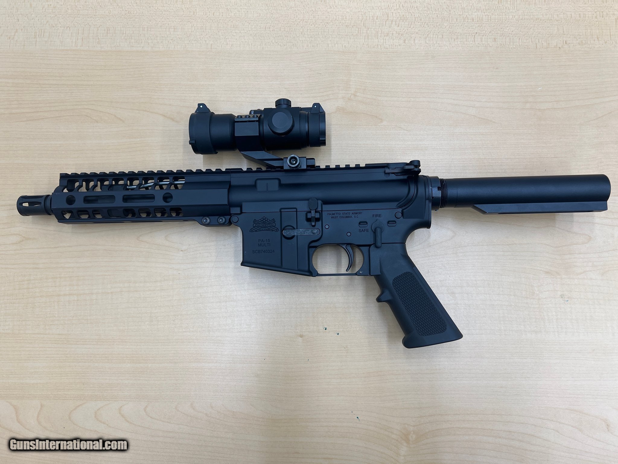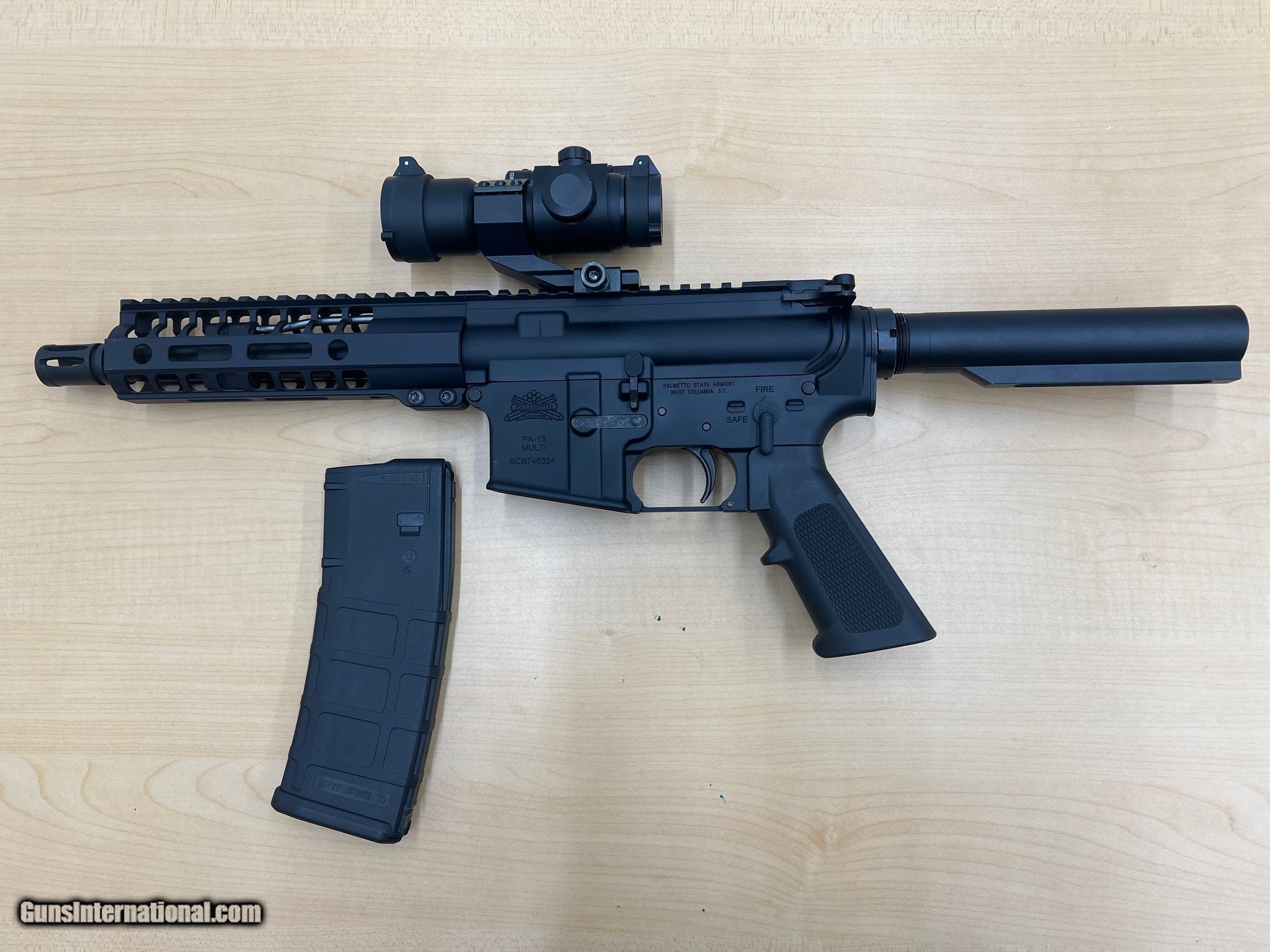 Description: Guns Listing ID: 1309957 This AR pistol has a 7.5in barrel with a m-lok hand guard. It has a red/green dot optic and a green laser. It comes with one 30rd magazine. SOLD Manufacturer: PALMETTO STATE ARMORY Model: PA-15 Caliber Info: 5.56X45MM NATO Condition: Used - Non-Certified Barrels: 7.5 BARREL Finish: BLACK |
