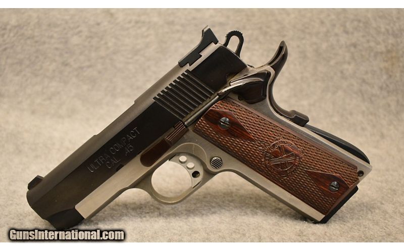 Description: This Springfield Ultra Compact .45 auto is in outstanding condition. The wood shows no blemishes and metal has two 1/4 " scratches on the left side. It has an adjustable rear sight, 3 extra magazines and a leather Galco holster. .45 Auto SOLD Chambers: .45 with 8 round magazine Metal Condition: Very Good Wood Condition: Very Good Bore Condition: Very Good Barrels: 3 1/2 Weight: 3 Sights: Adjustable Rear Sight Item Location: Kansas City, KS |